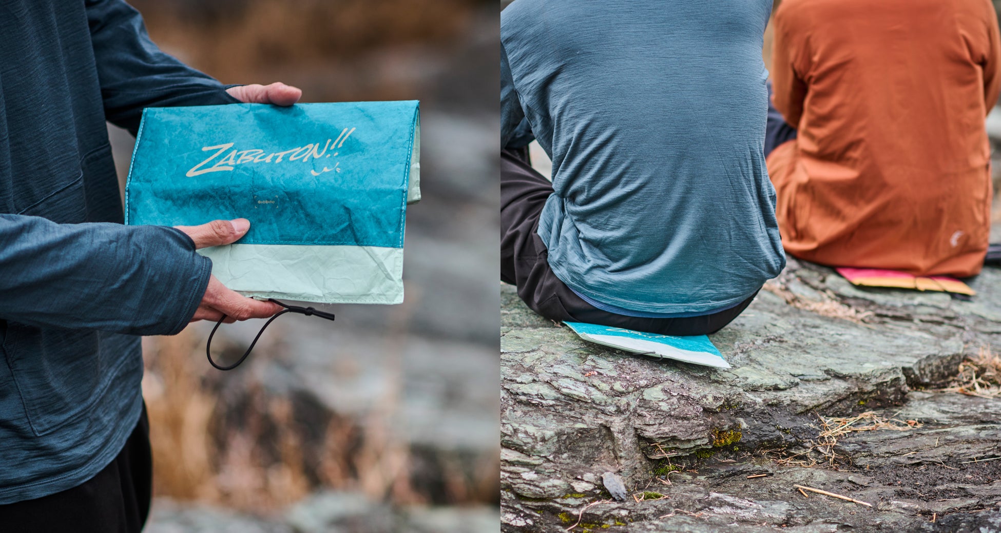 「山のざぶとん」が活躍するのは、山行中の休憩時間。だからこそ、すぐに取り出せて、さっと使えることにこだわりました。