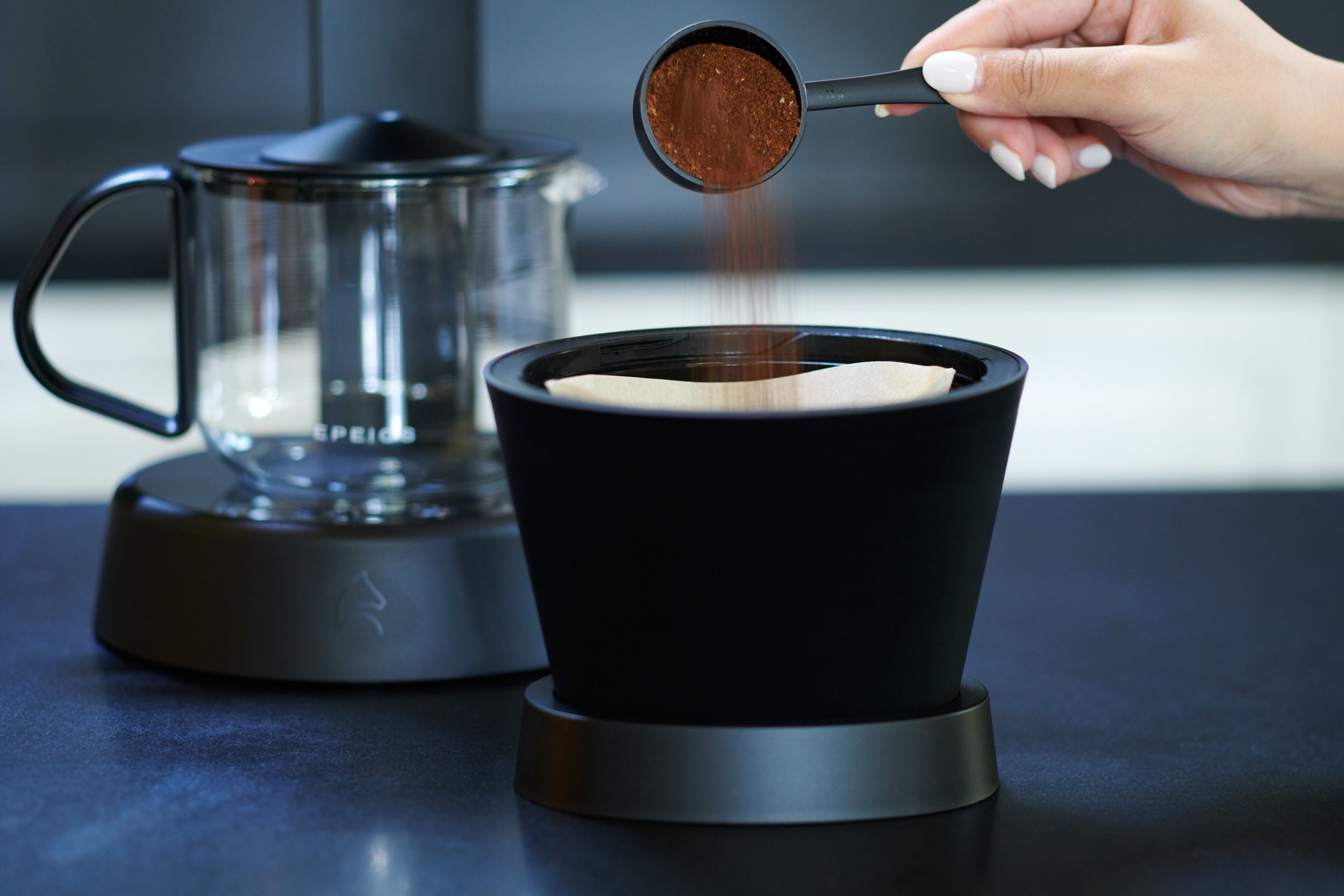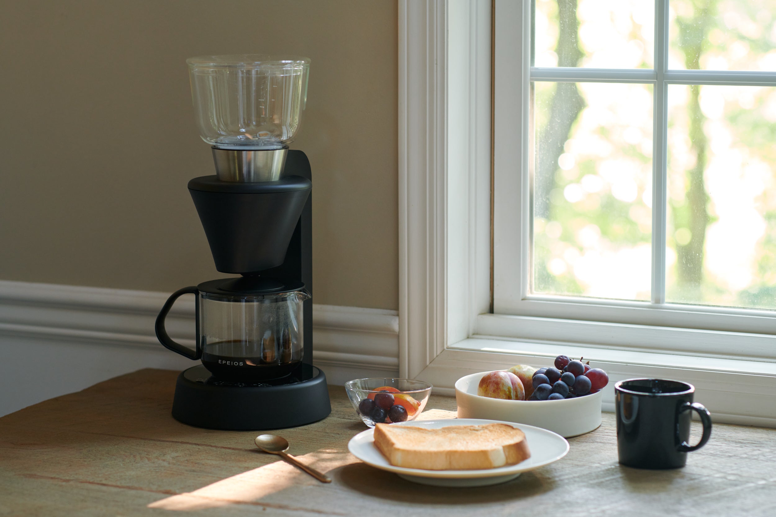 *コーヒー粉の粒度の均一性や使用後のお手入れ、コーヒーメーカーのサイズ感、粉砕する際の音の大きさなど、さまざまな使用シーンを考慮。EPEIOSでは「美味しい一杯」を抽出することに注力して、敢えてコーヒーミル機能を取り外しました。