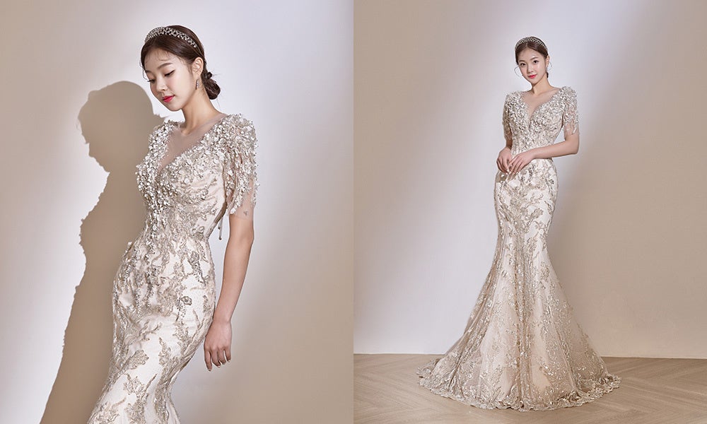 Aurumは、韓国のオートクチュールウェディングドレスブランドです。韓国の最新トレンドをリードするAurumのドレスは、精巧なビーディングや繊細なレースが特徴。アジア女性のボディシルエットに合わせて丁寧に作られ、その優れたフィット感はすべての花嫁様をより美しく魅せてくれます。