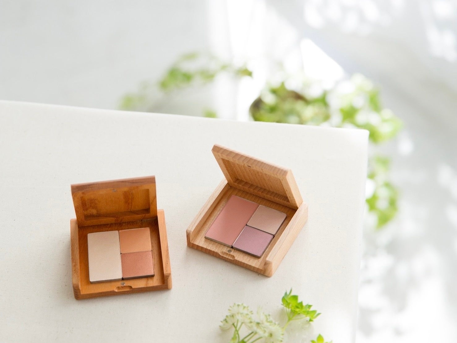 カカオバターやセサミオイルなどの植物由来の天然オイルを配合し、肌にうるおいを与えながら繊細な輝きを放つチークやアイカラーで、心ときめくカラーを楽しんで。