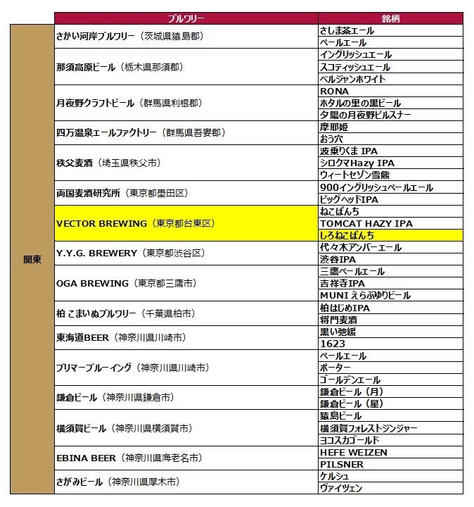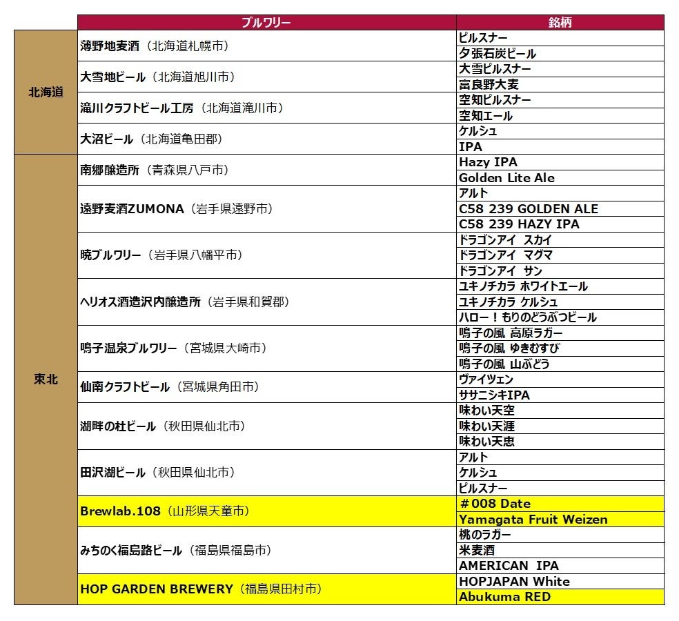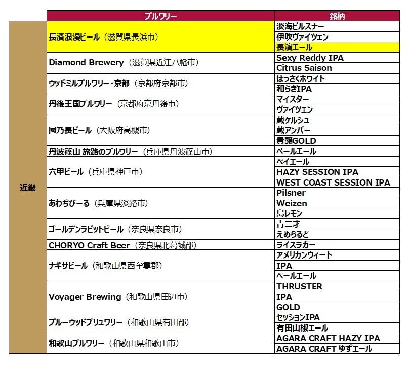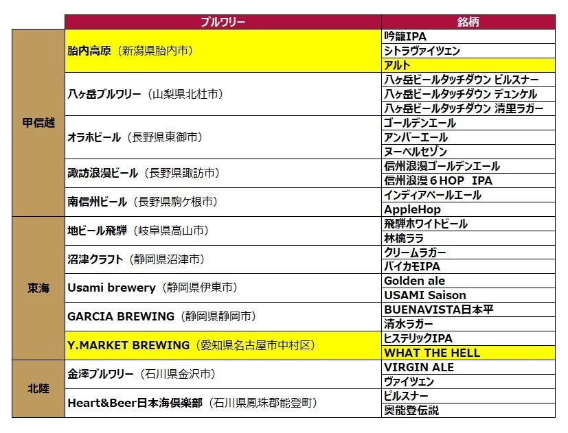 ※黄色い枠が今回の新規追加ブルワリー・銘柄です