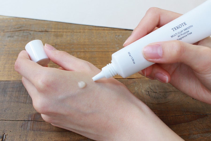 最大の魅力は、塗った直後でもベタつかず、すぐに針仕事や手仕事に戻れる、TEKOTEハンドクリームの使い心地にあります。山形県産の天然クレイ「モンモリロナイト(保湿成分)」が肌の上にうるおいの薄膜を形成し、まるで薄いベールで手が覆われているような感覚で、乾燥や外的刺激からやさしく守ります。