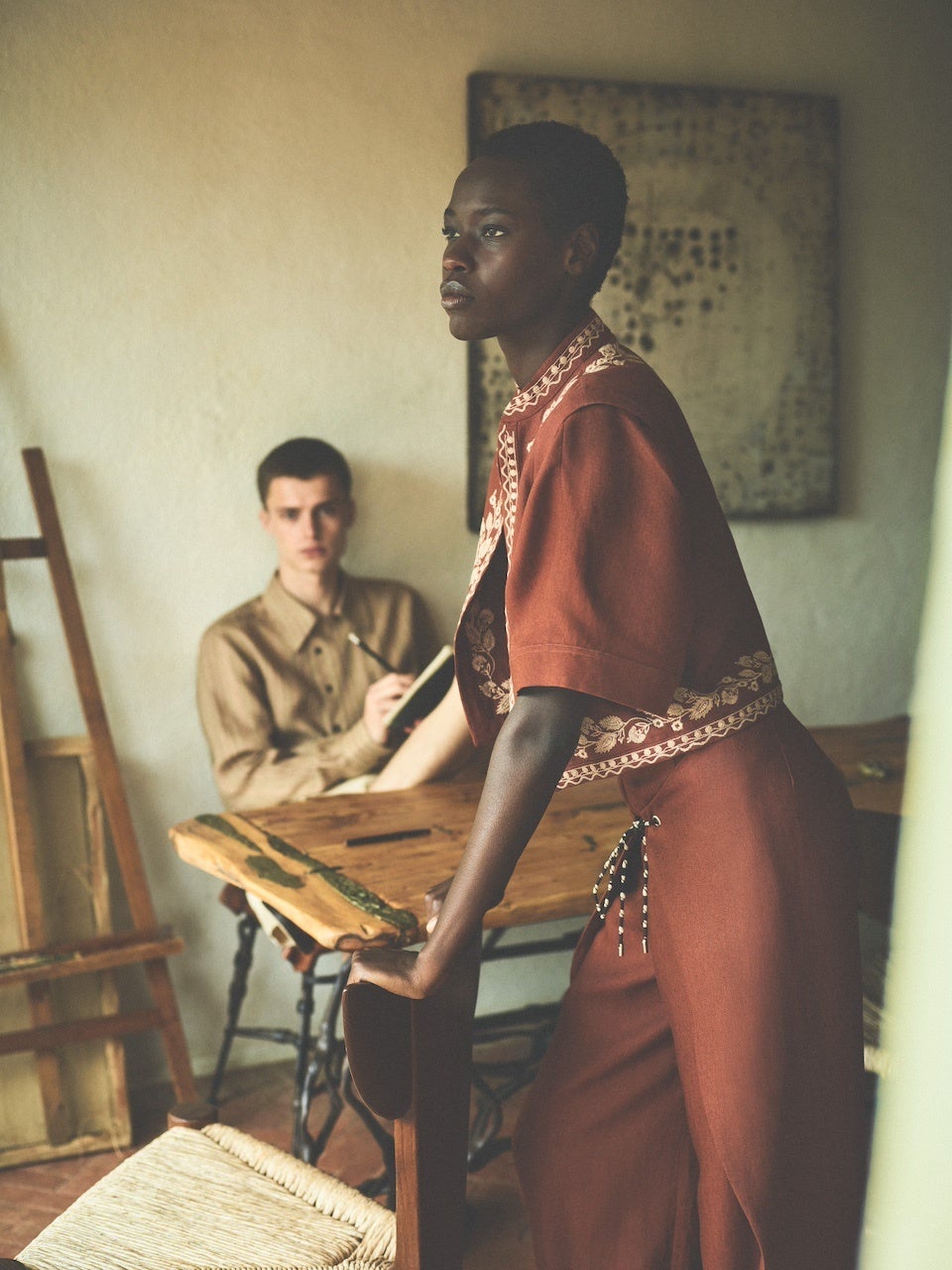 さらに、最高品質の素材、ロロ・ピアーナが創り出す独自のファブリックが加わりました。ロロ・ピアーナは、最も高貴な天然繊維を、輝く透明 感のある涼しげなシルク、リネン、コットンなどの素材に変える達人です。メゾンのアイコンであり上質なソラーレとアンティグア仕上げを施したリ ネンのウェアは、最上級でありながらリラックス感があり、現代的かつ独特のクラシックな雰囲気を醸し出しています。リネンの流れるような洗 練されたシルエットは、夏の自由を象徴しています。例えばレディスではリネンやシルクのフラワープリントのジャンプスーツ、メンズではロロ・ピア ーナのアイコンのひとつをよりカジュアルにしたアンティグアリネンのスパーニャ・ジャケットなどに見られます。
