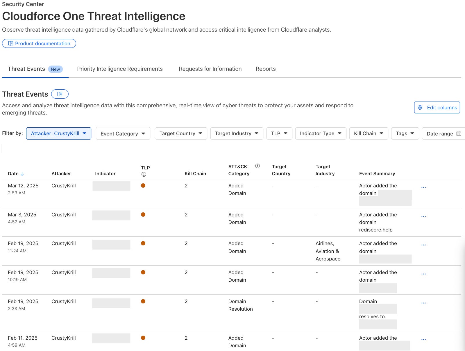https://developers.cloudflare.com/security-center/cloudforce-one/#analyze-threat-events