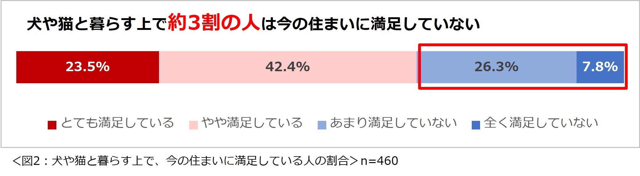 犬や猫と暮らす上で、「今の住まいに満足していない人」は約3割。