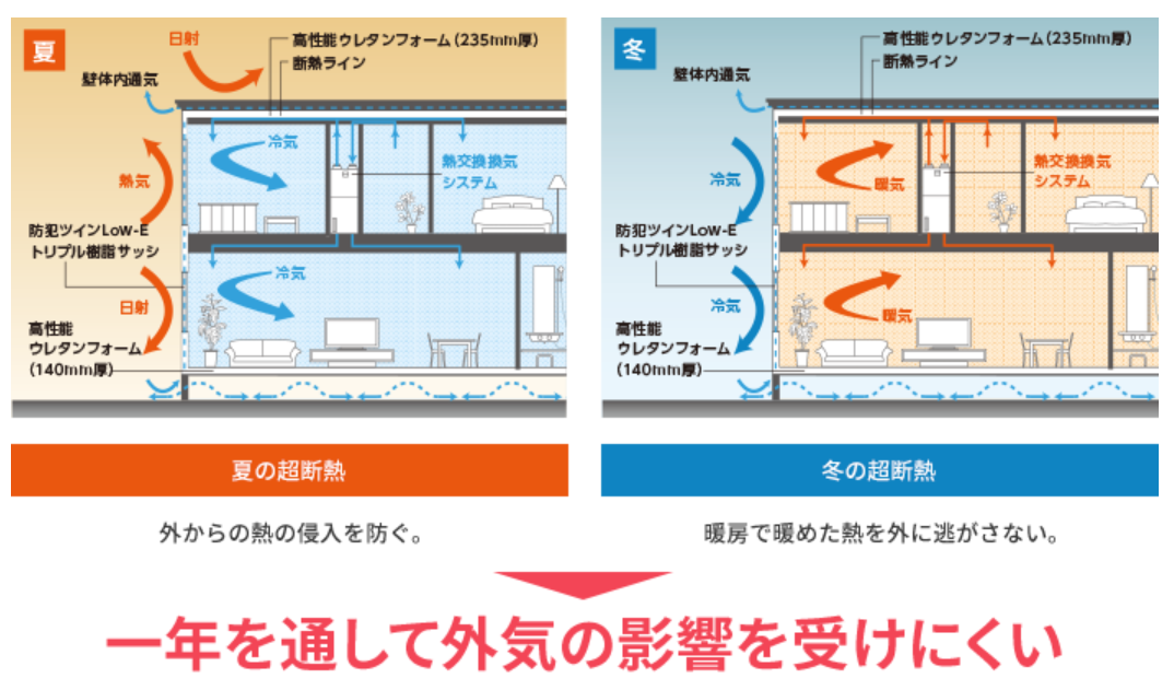 ◆住まいの温度差が少なく、家中まるごと暖かい。一条工務店の「全館床暖房」