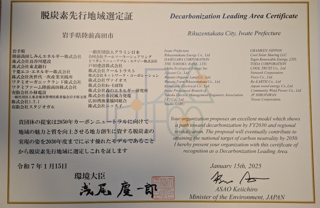 グラミン日本、環境省第5回脱炭素先行地域に選定された岩手県陸前高田市「脱炭素と資源循環で実現する農林水産業振興 ~復興の先の創造的産業振興モデル~」の実現に向けて連携協定を締結しました。