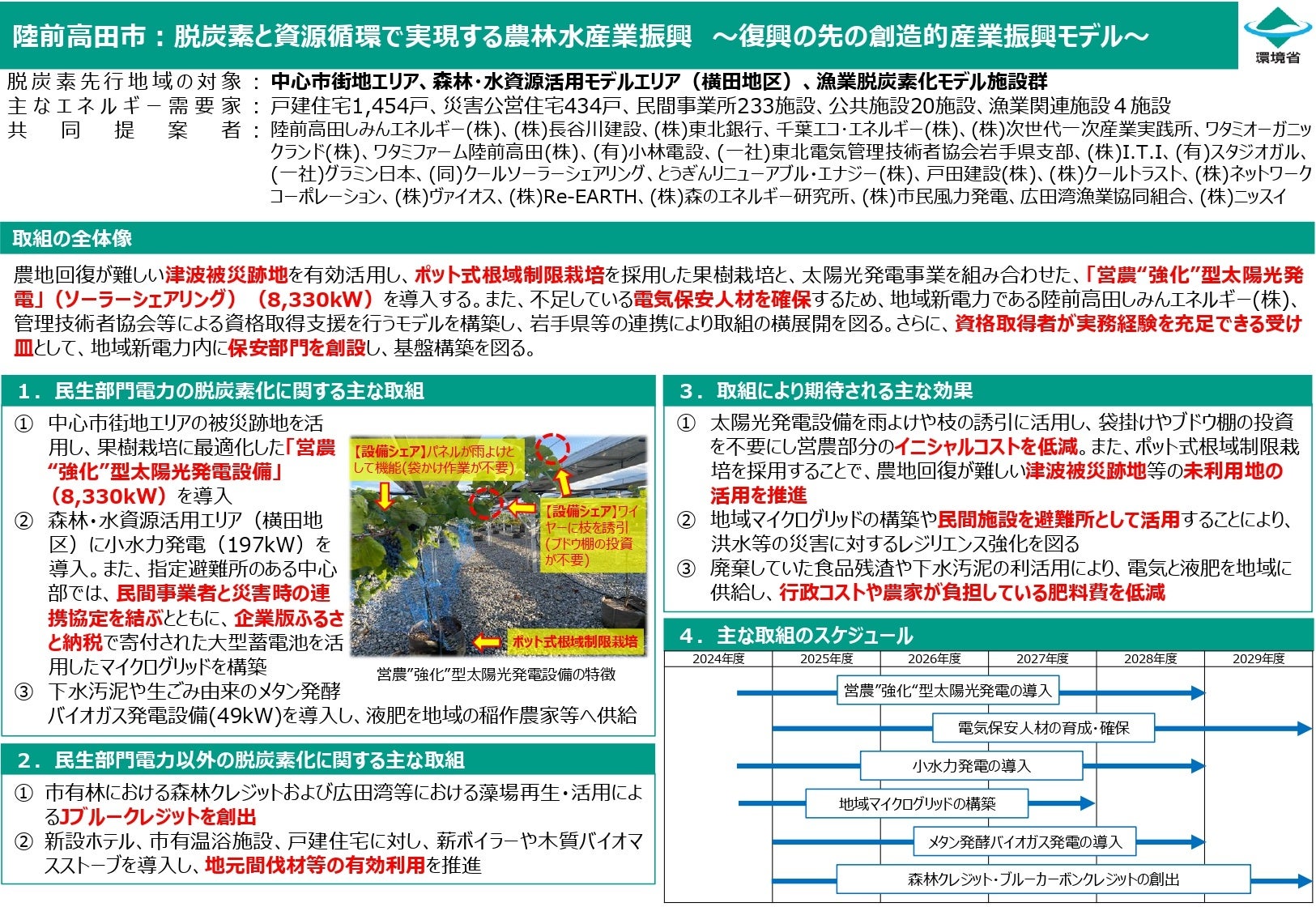 岩手県陸前高田市「脱炭素と資源循環で実現する農林水産業振興 ~復興の先の創造的産業振興モデル~」の概要