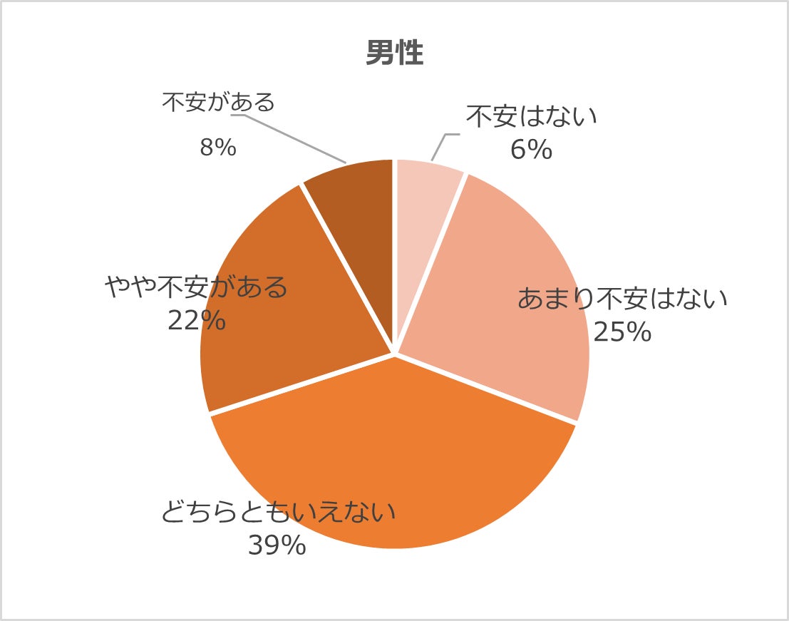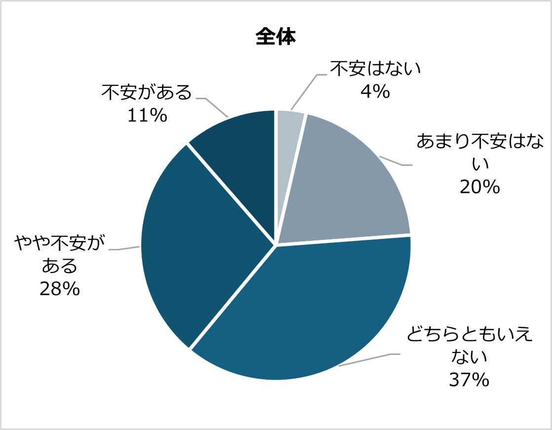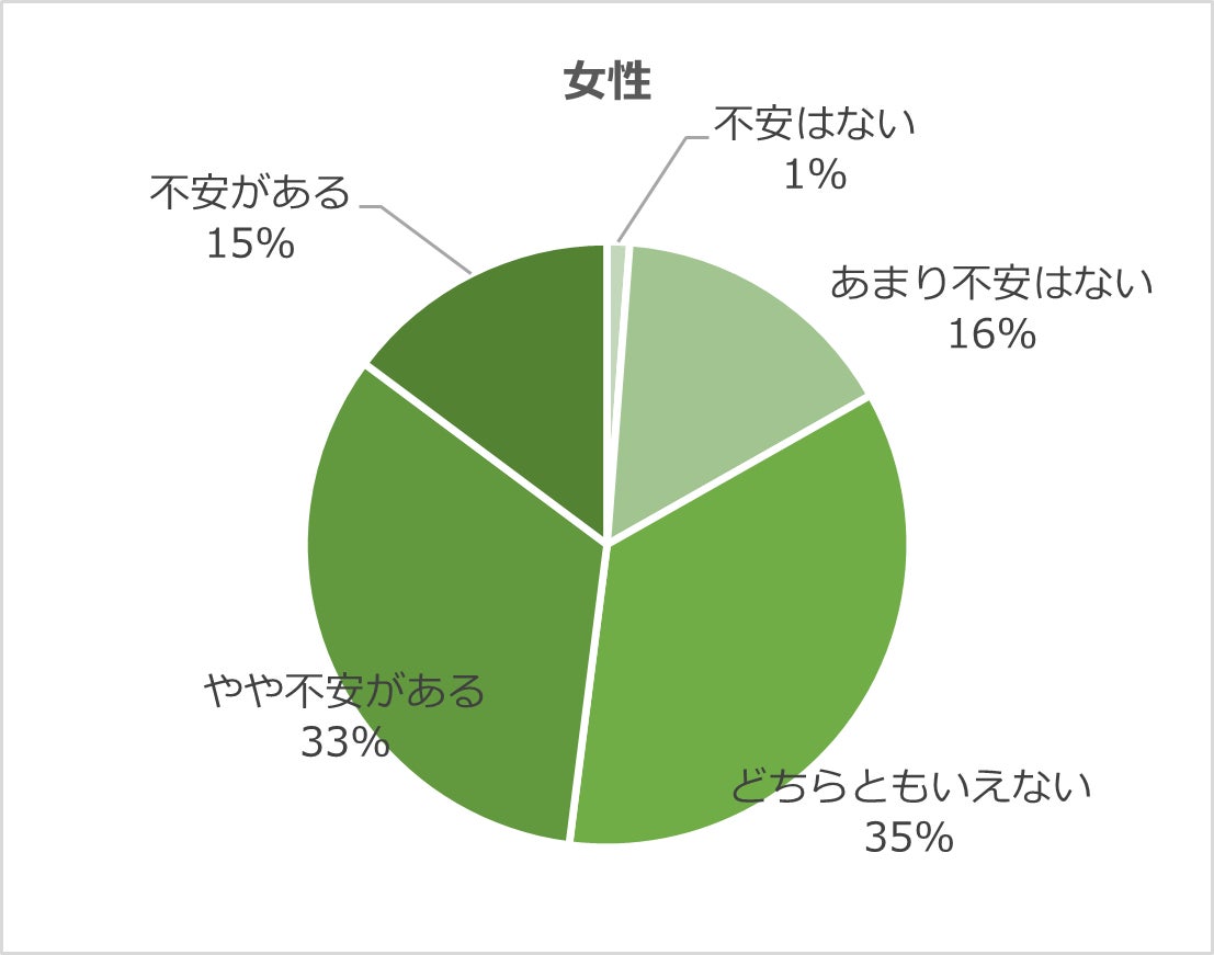 女性の約5割が不安を感じており、男女合わせて約4割が不安を感じている
