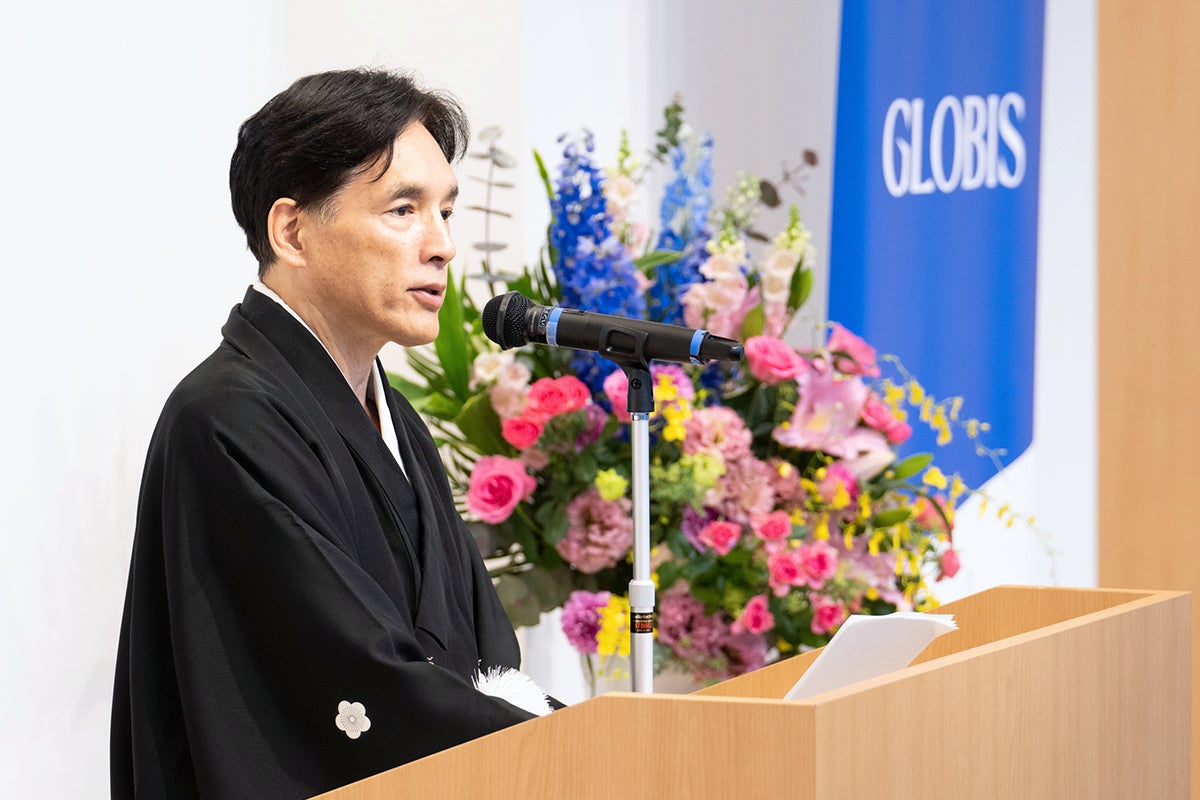 学長の堀義人は式辞で「2006年にはわずか78名だった入学生は今や日英合わせて1,000名を超え、『創造と変革の志士』たる卒業生9,800名以上を社会に送り出してきました。グロービスは、規模の面でも、評価の面でも、日本No.1の経営大学院になりました。各人が、『可能性を信じる』志を打ちたて、自らの能力を研鑽し、人的ネットワークを駆使すれば、多くのことが実現できると信じています」と述べました。
