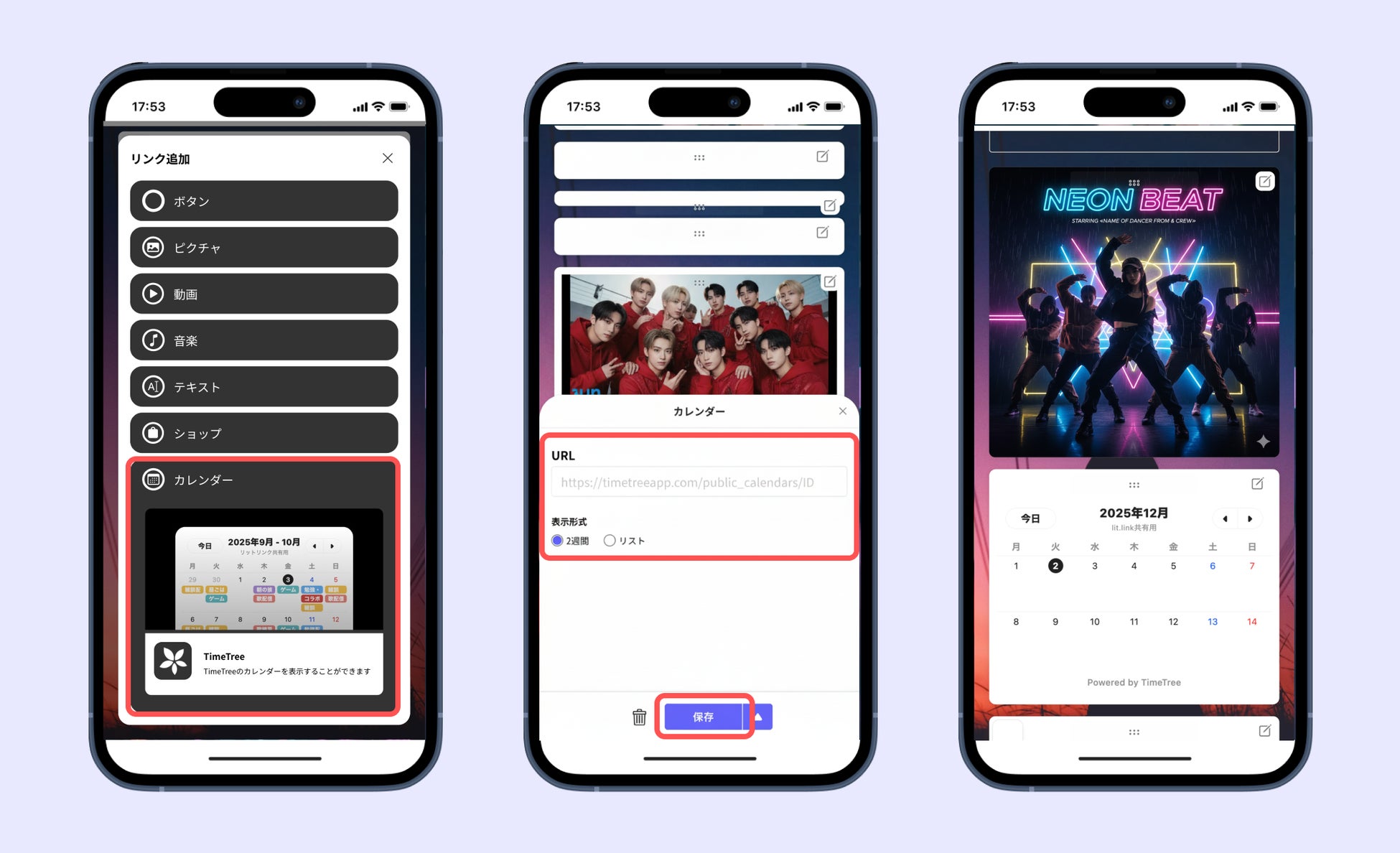 これにより、ユーザーはTimeTreeで作成した「公開カレンダー」を自身のlit.linkページ内に直接埋め込み、イベント情報や出演スケジュールを手軽に発信できるようになりました。