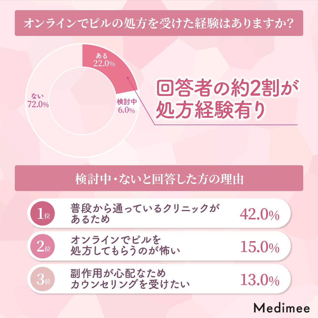 アンケート回答者のうち、オンラインでピル処方を受けた経験がある方は約2割という結果になりました。