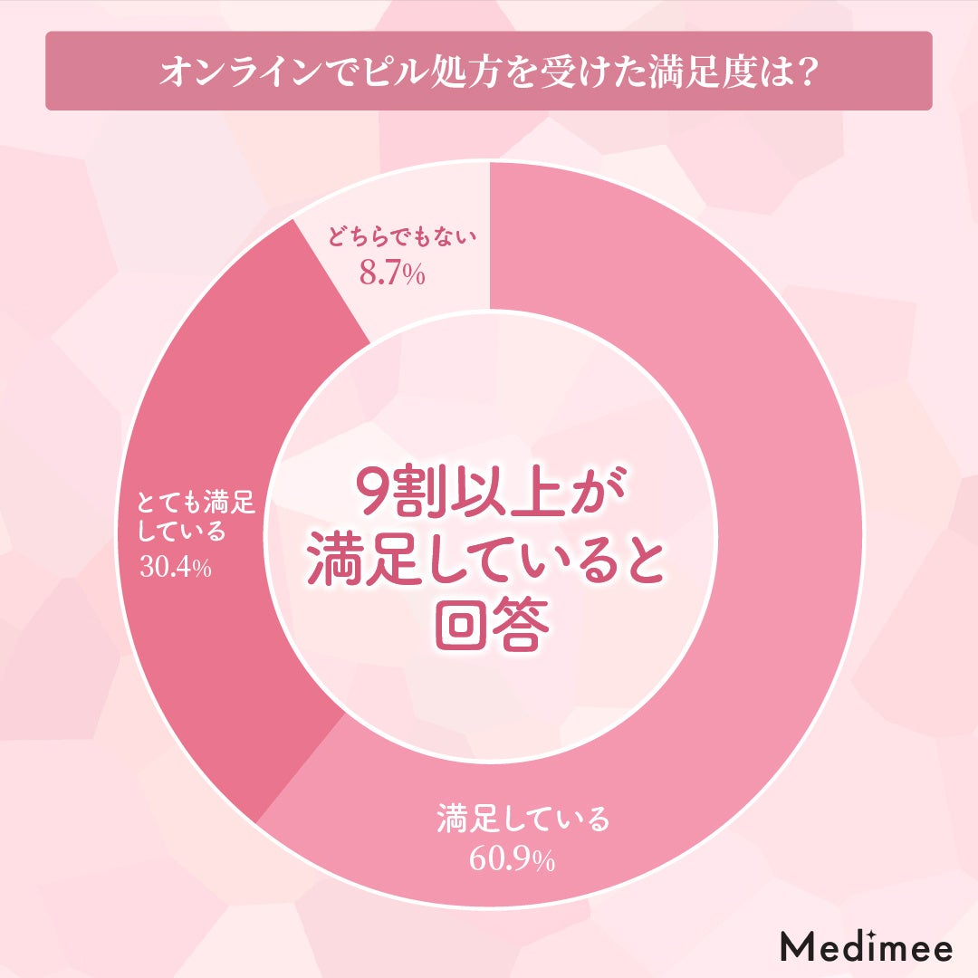 オンラインでピル処方を受けたことがある方のうち、9割以上が「とても満足している」または「満足している」と回答しました。