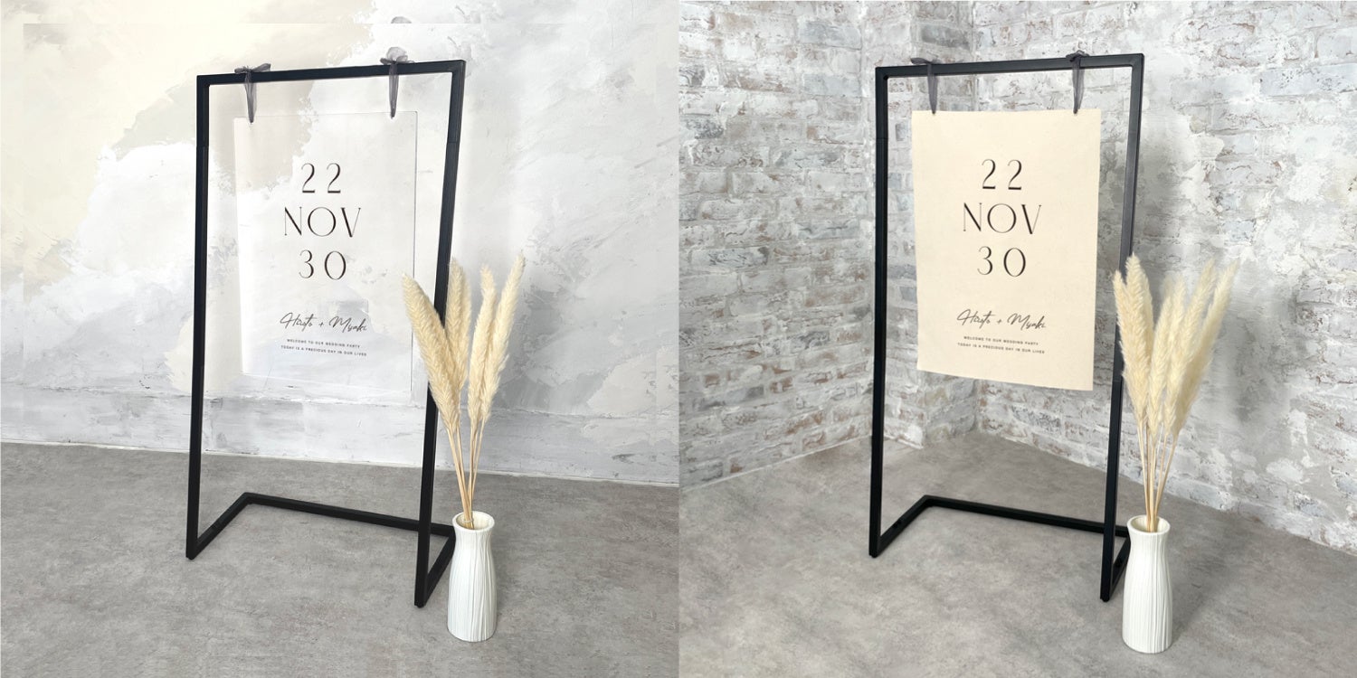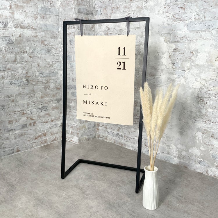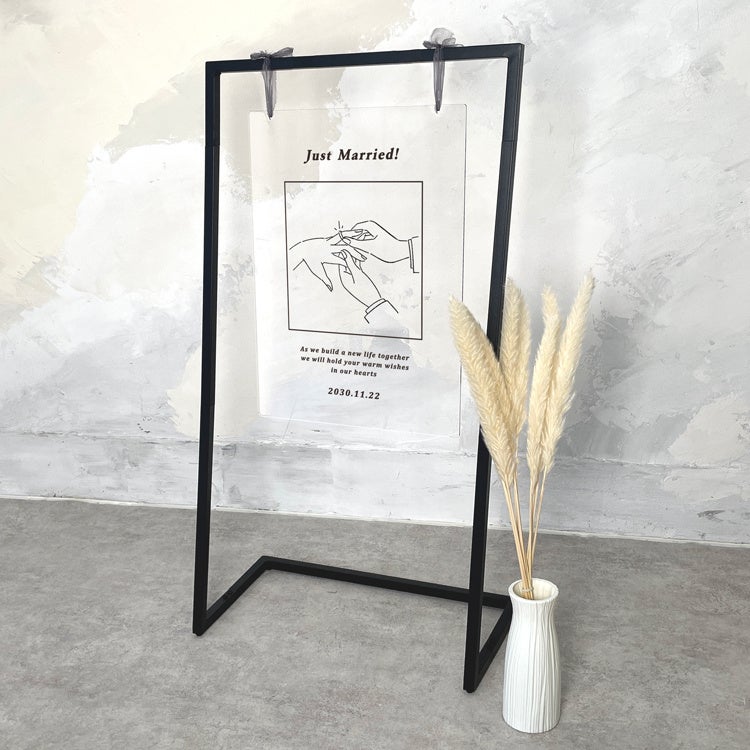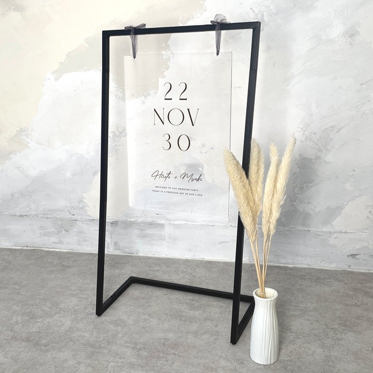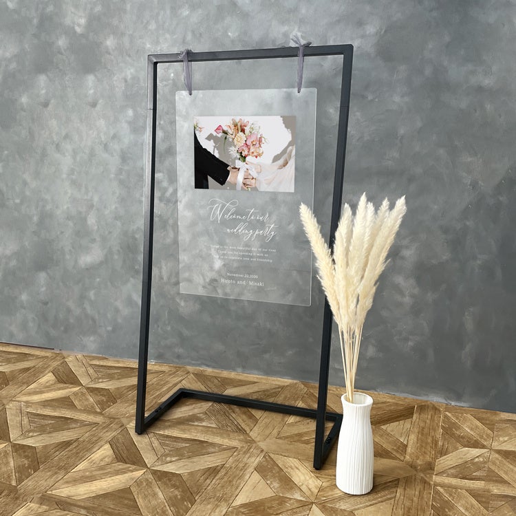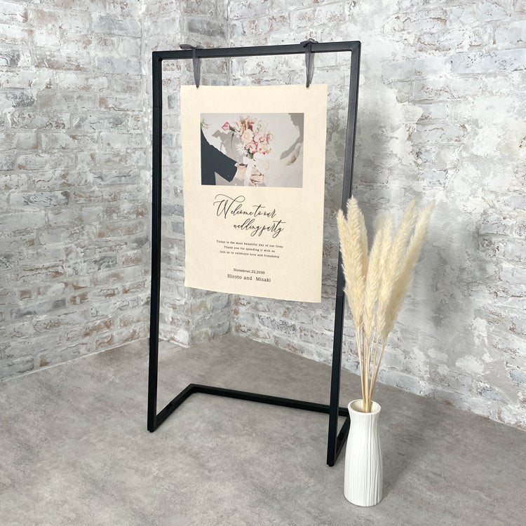 セットになっているウェルカムスタンドは、ブラックのフレームで、飾るだけでウェルカムスペース自体を一気にモダンな雰囲気にしてくれます。