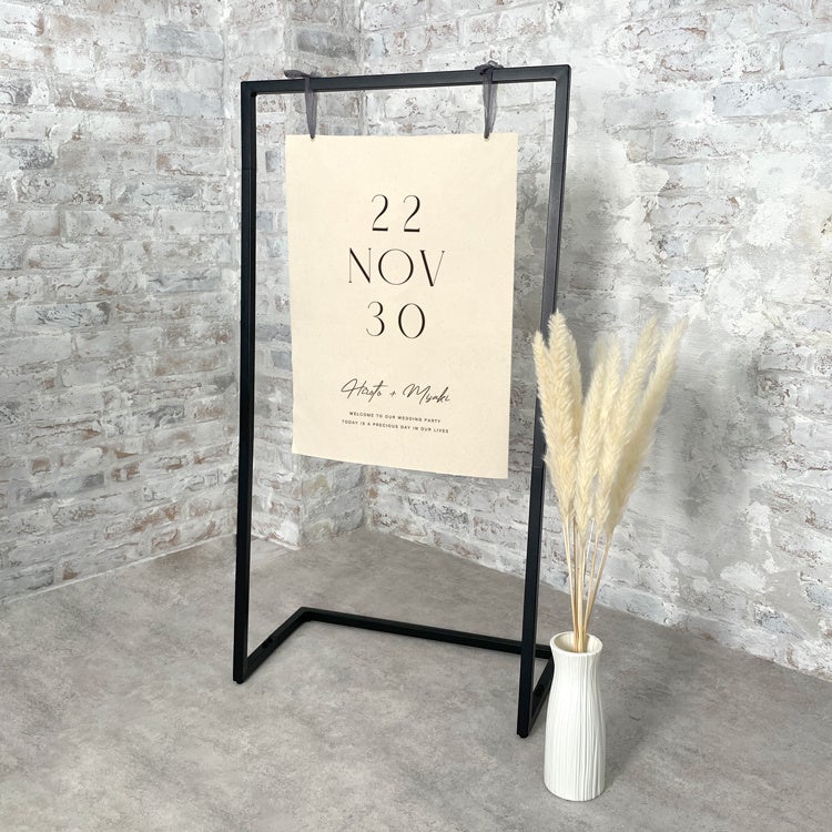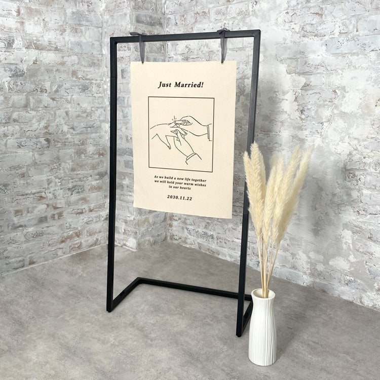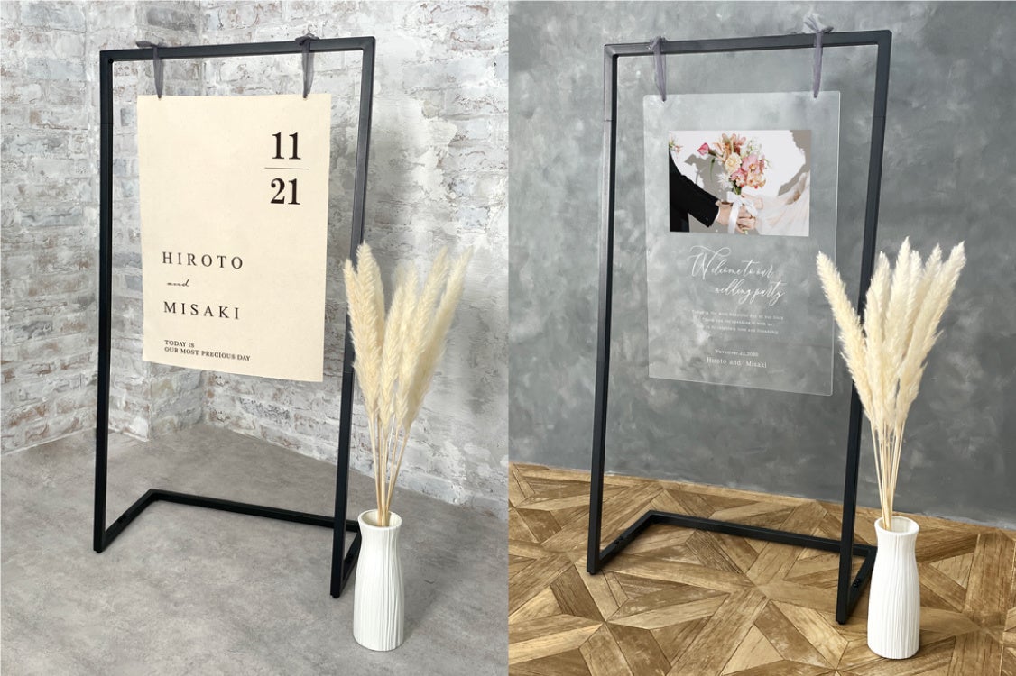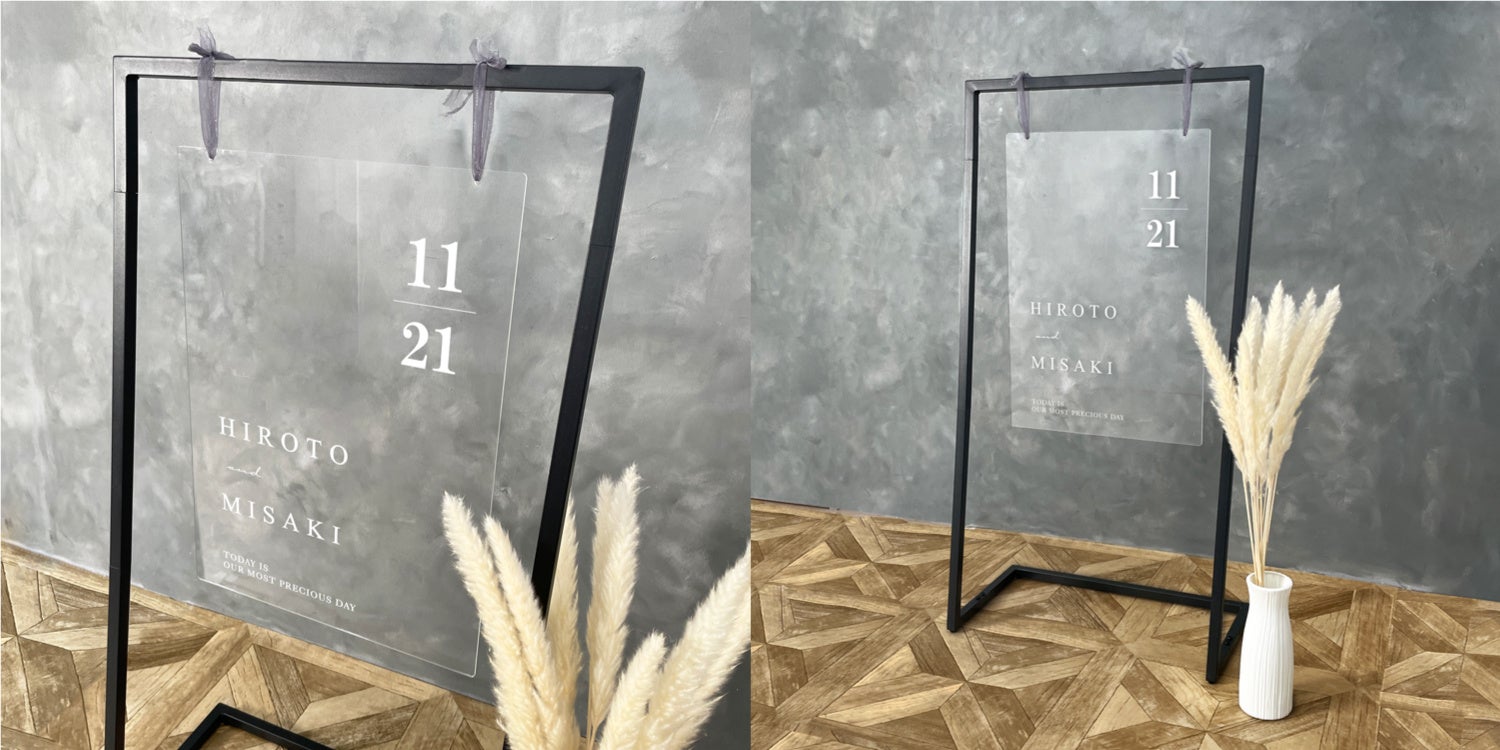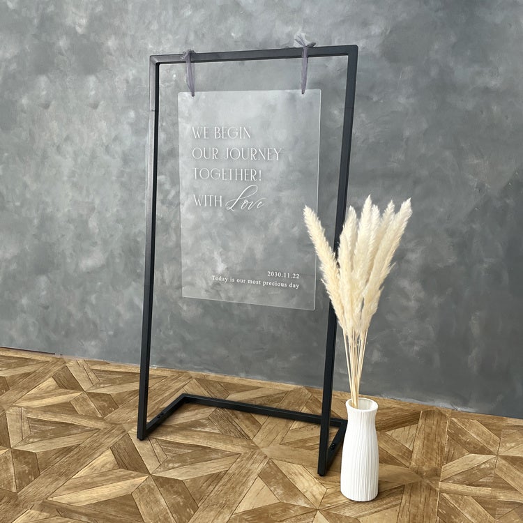 セットになっているウェルカムスタンドは、ブラックのフレームで、飾るだけでウェルカムスペース自体を一気にモダンな雰囲気にしてくれます。