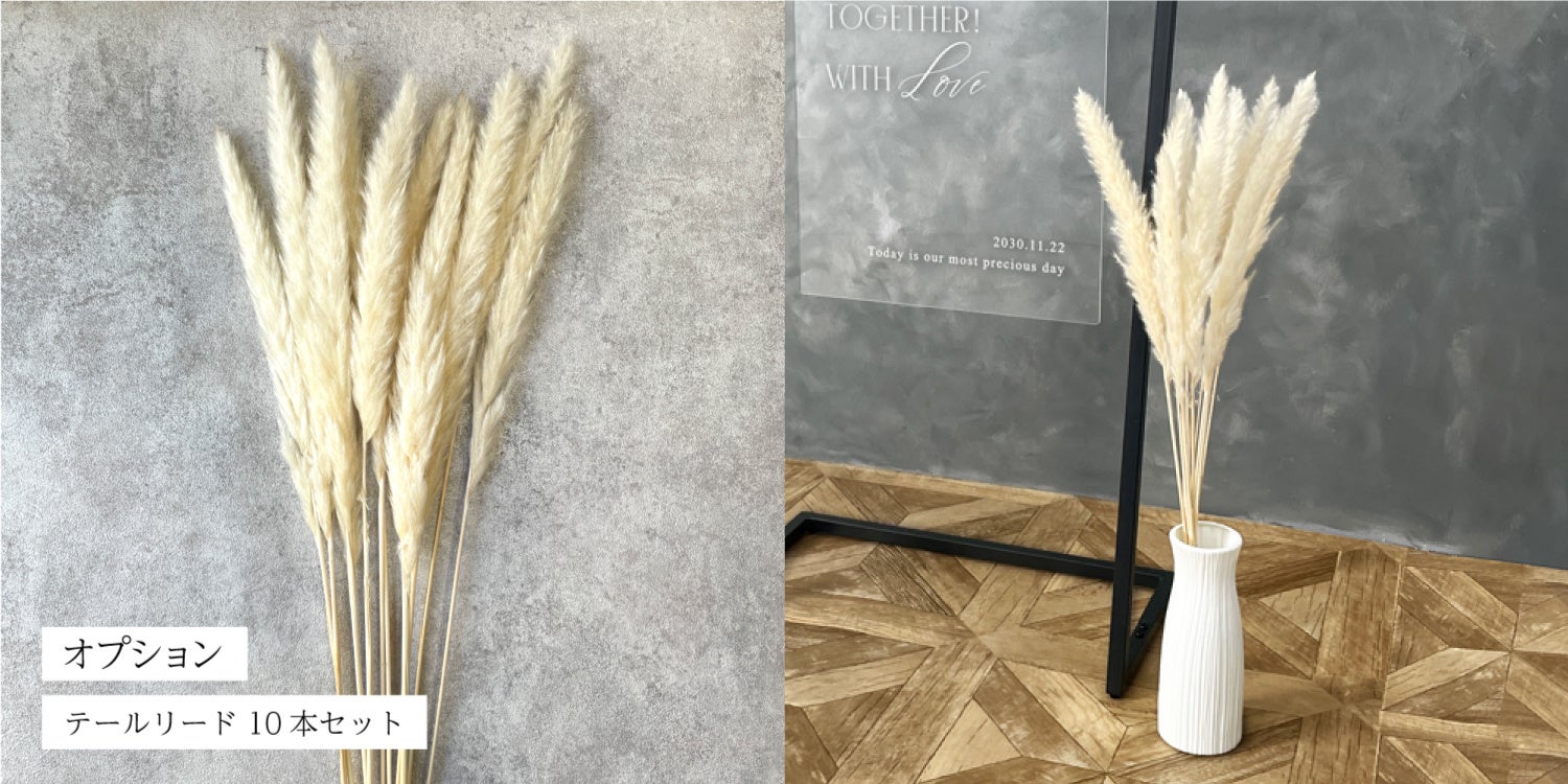 オプションで購入できるテールリードは高さが約75cmとあり、一緒に飾ることでよりウェルカムスペースを華やかにしてくます。