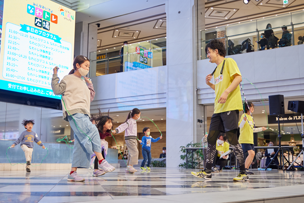 子どもたちにステージに上がっていただき、プロなわとびプレーヤー生山ヒジキさんと一緒になわトレを体験いただきます。家に帰った後も元気に遊んですくすくと育ってもらうことを目指します。