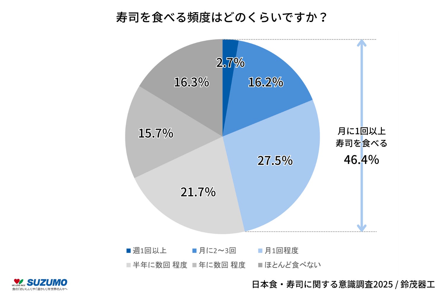 『寿司を月1回以上食べる人は半数近い結果に。寿司はハレの日と並ぶ日常食として定着』