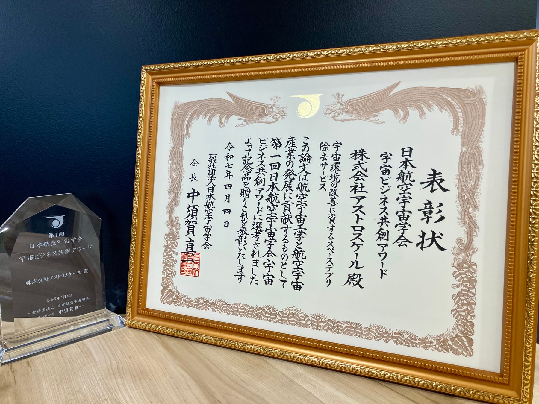 日本航空宇宙学会は、航空宇宙工学と航空宇宙産業の発展を奨励することを目的に、毎年学会賞の表彰をしています。この度アストロスケールが受賞した宇宙ビジネス共創アワードは今回初めて設けられたものであり、テクノロジーやアイデア、あるいは仕組みやプロセスが画期的であり、ビジネスとして発展することが期待される法人(組織)が対象に選ばれます。アストロスケールは技術的なブレークスルーを得るとともに新たなビジネスモデルを構築した点などが評価され、受賞に至りました。