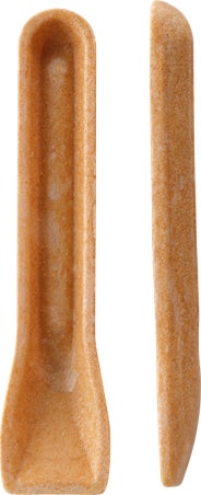 これらの課題を克服するため、原料に小麦繊維を配合して折れにくい設計を実現するとともに、持ち手の断面をW形状とすることで強度と成形性の双方を向上させました。これにより、口当たりの良さを損なうことなく、スプーンとしての機能と食べられるという価値を両立しました。