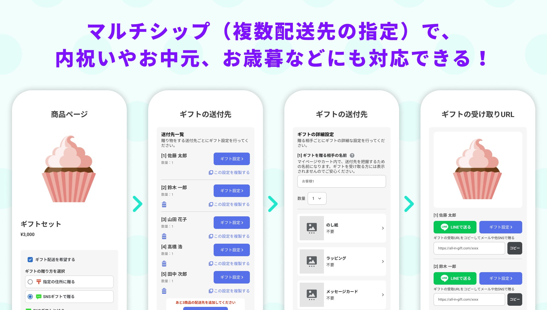 あわせて「複数配送先へのギフト設定(マルチシップ)機能」もリリースしたことをお知らせいたします。