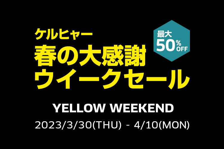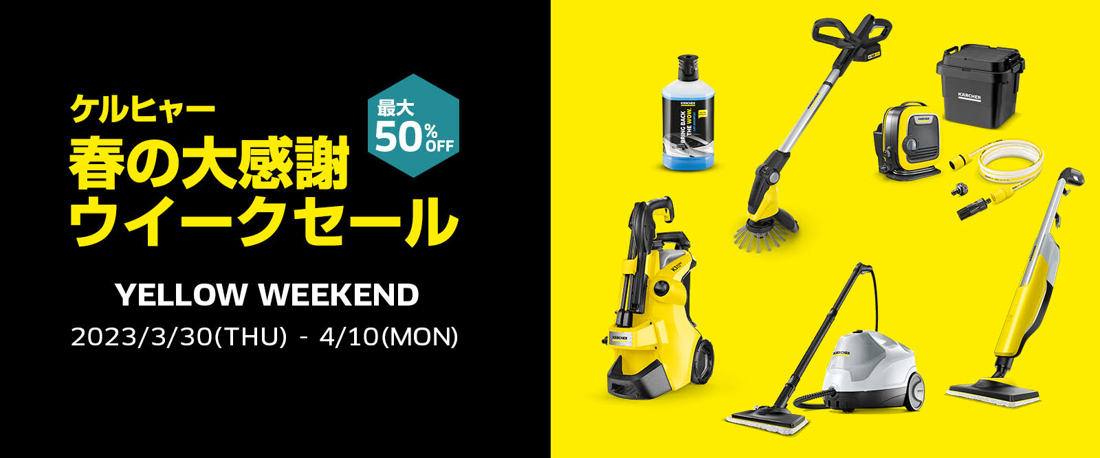 | セールサイト | ▼ケルヒャー公式オンラインショップ https://www.kaercher.com/jp/onlineshop/event/yellow_weekend_2023.html ▼ケルヒャー公式楽天市場店 https://item.rakuten.co.jp/karcher/c/0000000351/ |