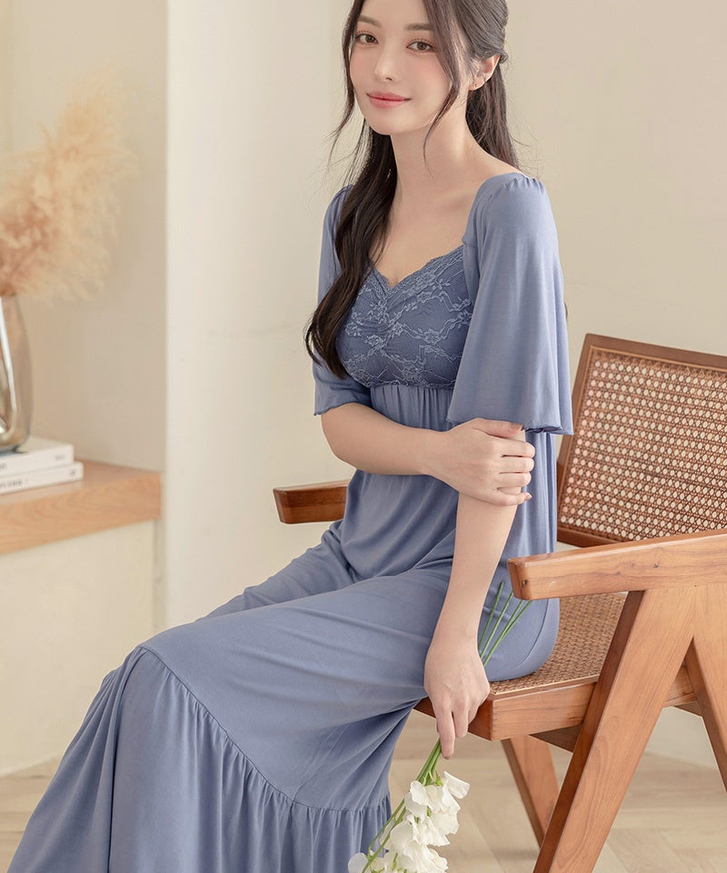 商品名:《ラクシアスリープ》ナイトブラワンピース 半袖ロング丈