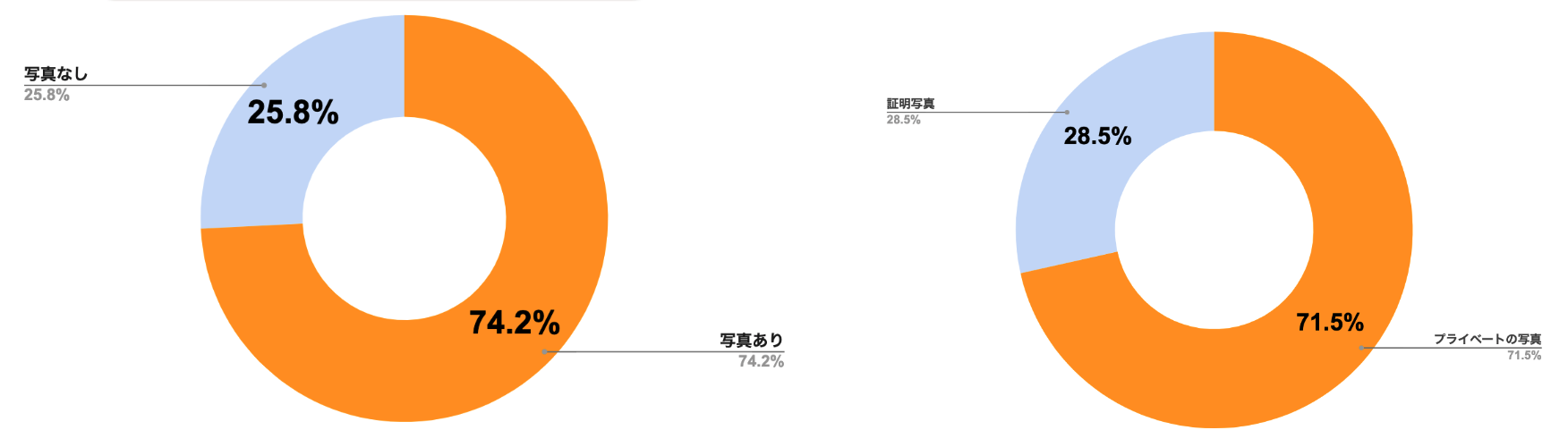 - ダイレクトリクルーティングサービス(スカウトサービス)にてプロフィールの写真を重視する企業は約74%