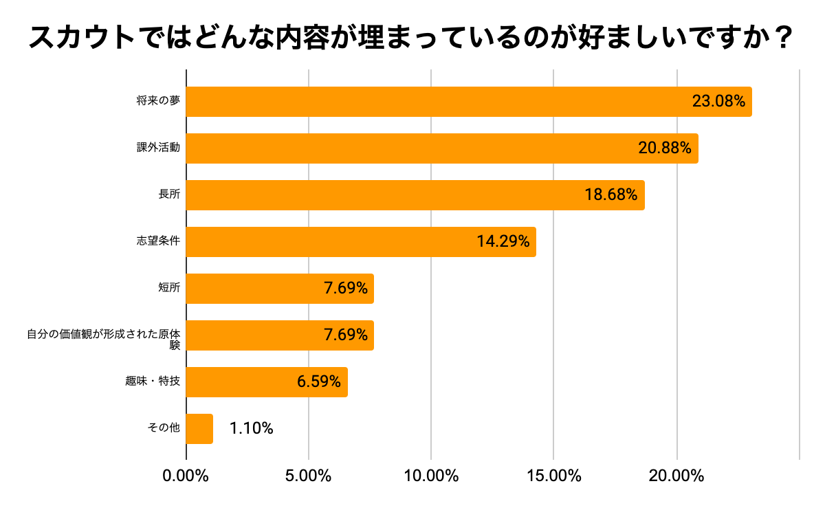 - スカウトする際の重視するポイントは将来の夢・課外活動・長所・志望条件