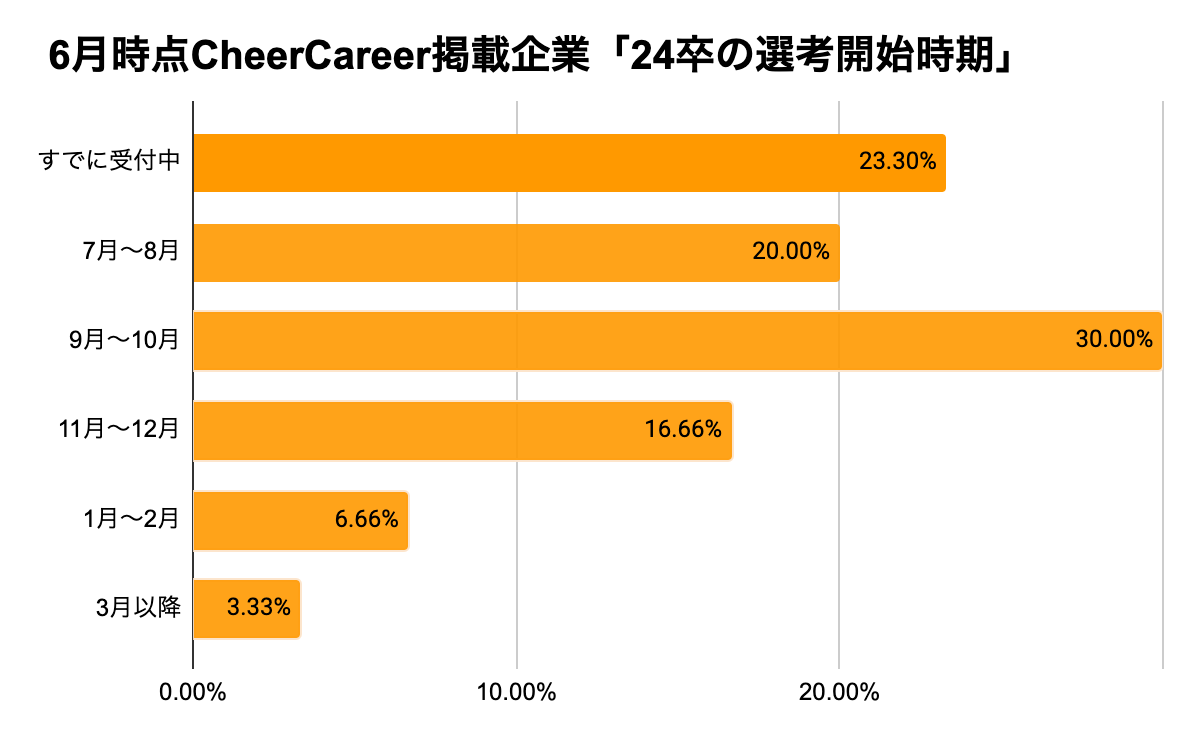 24卒就活生必見!CheerCareerが企業の採用活動予定を大公開!73%が年内10月までに選考をスタート