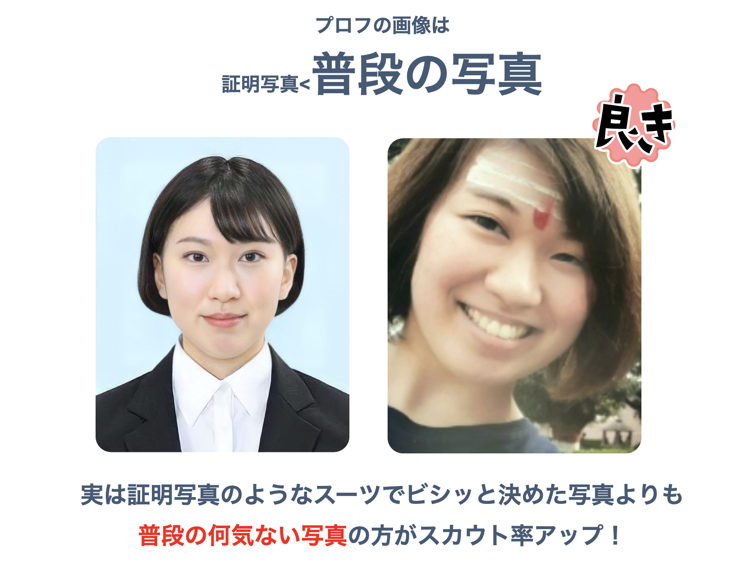 写真以外の企業が実際にスカウトを打つか決める要素としては、将来の夢・課外活動・長所・志望条件を重視している。