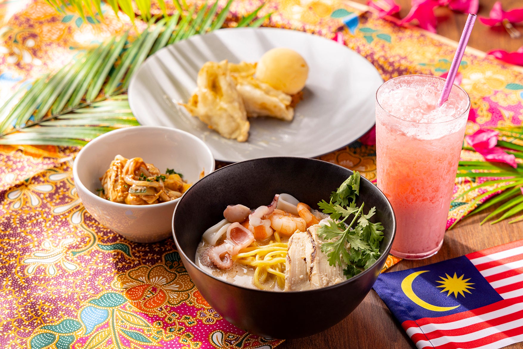 11月はマレーシアをテーマに、メインにシーフード&チキンラクサヌードル、サイドにロジャック サラダ、ドリンク(セット別料金)はアイス バンドゥン(ローズシロップをコンデンスミルクで割ったドリンク)、デザート(セット別料金)はバニラアイスとコンデンスミルクを添えたバナナフリッターをご用意し、伝統的なテイストを楽しめるラインナップに。