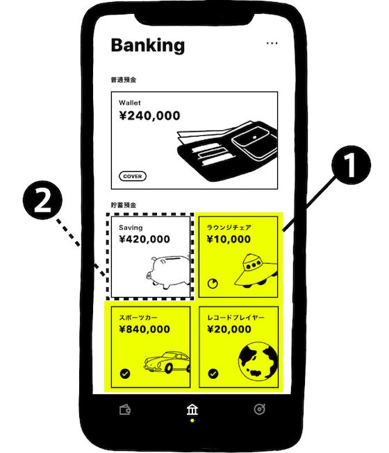 | ❶ Saving | •普通預金口座と同時に開設される貯蓄用の口座 •すべてのお客さまが普通預金口座開設後すぐにご利用可能 |
