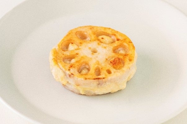 STRONGごま油で香り付けした軟骨入りつくねと蓮根のはさみ焼き。蓮根のシャキシャキとした食感に鶏肉の旨味を掛け合わせました。