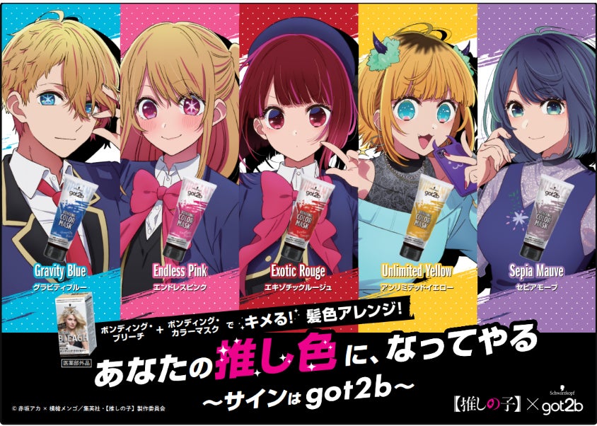 ヘンケル コンシューマーブランド(代表:ロラン・マルタン 東京都品川区)が展開するブリーチオンカラー売上No.1*のヘアコスメブランドgot2b(ゴットゥービー)が、TVアニメ【推しの子】とコラボした「あなたの推し色に、なってやる!~サインはgot2b~」キャンペーンを2024年7月1日(月)よりスタートいたします。