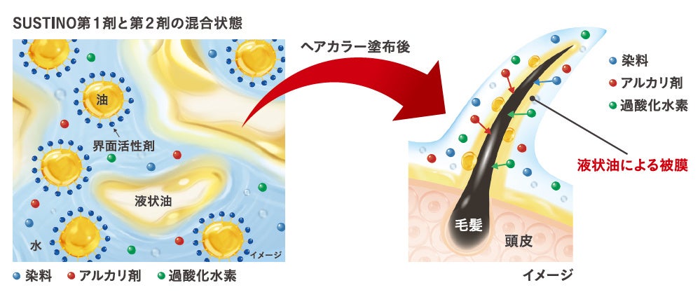 こうしたニーズの変化を受け当社は、従来の“白髪をしっかり染めるためのヘアカラー”という枠を超え、「髪へのダメージ抑制」と、「良好な染色性」による狙い通りの色味表現を両立する高付加価値ヘアカラーとして「サスティノ」を開発しました。