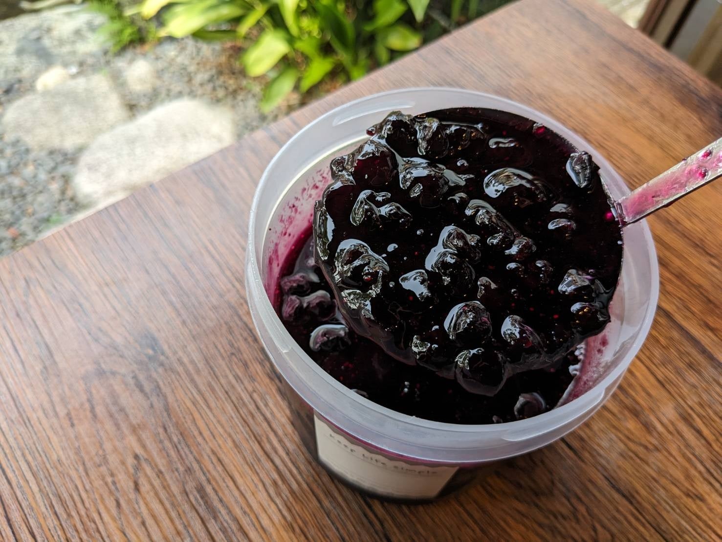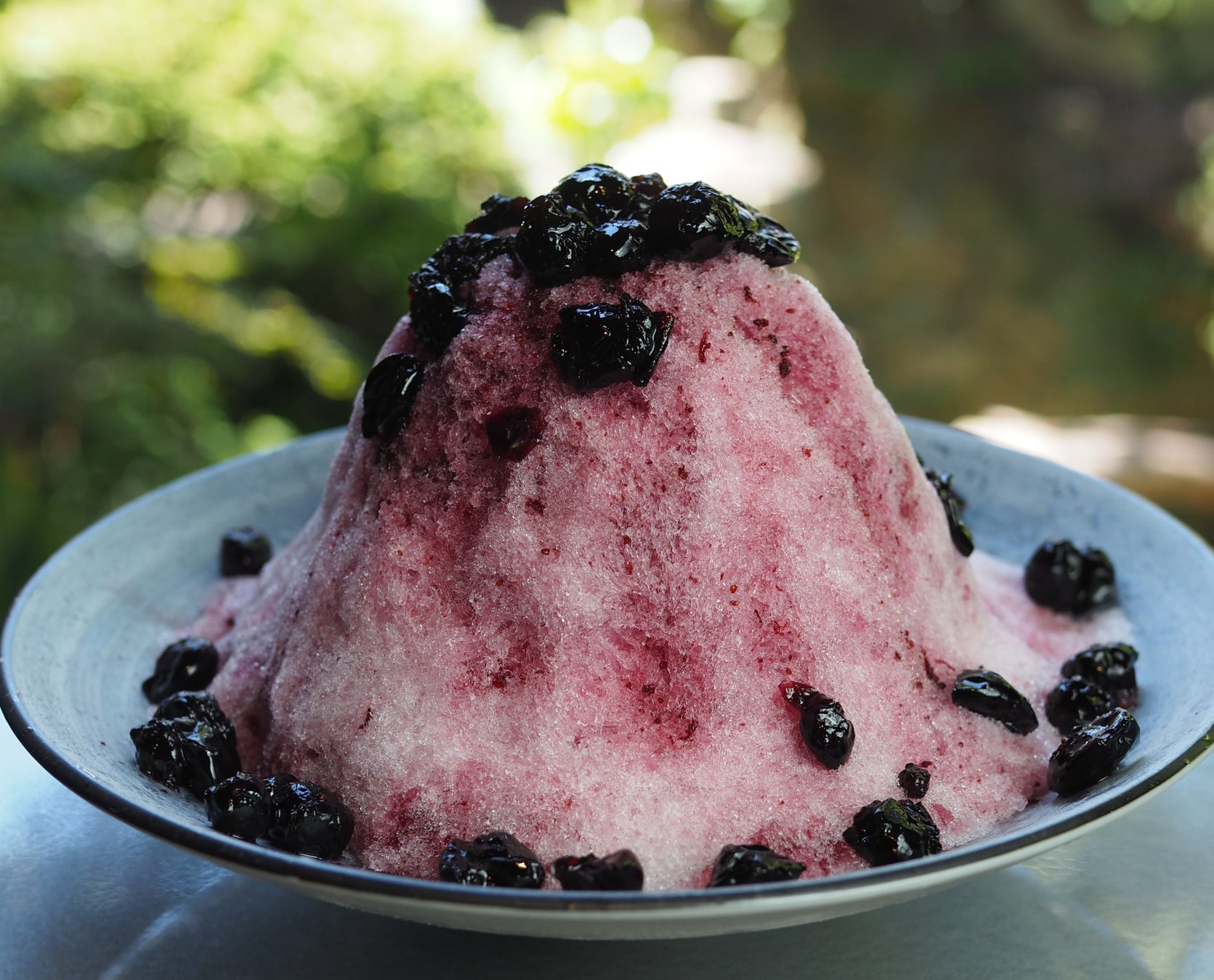 豊川産つぶつぶブルーベリージャム。ブルーベリーと砂糖のみを使って甘酸っぱく爽やかな濃厚ブルーベリーソースは 栄養価も高く、美容や健康効果も抜群。真っ白な氷が鮮やかなブルーベリー色に染まります。