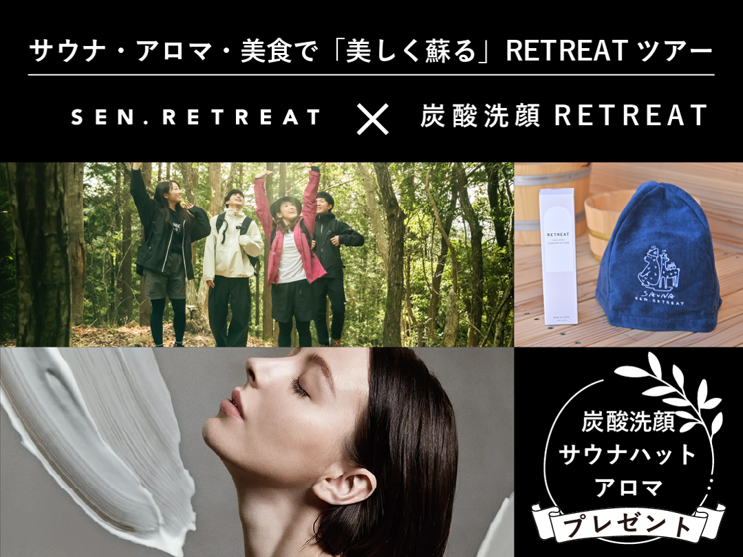 1千年超の歴史と奥深い自然を抱く熊野古道。ここは古来より、訪れると魂が清められ再生する「蘇りの地」として、多くの人々が信仰した神聖な霊場です。この地にある1棟貸し宿「SEN.RETREAT TAKAHARA」は、大自然の中でストレスをリセットする「リトリート体験」ができる場として、バーベキューや星空観察、焚き火などのアクティビティを楽しむことができます。同じく「心身をリセットする」という意味合いを込めて名付けられた炭酸泡洗顔「RETREAT」と提携し、リラクゼーションに満たされ、新しい自分と出会う「極上のリトリート体験」を提供するツアーを、2022年7月に初開催しました。