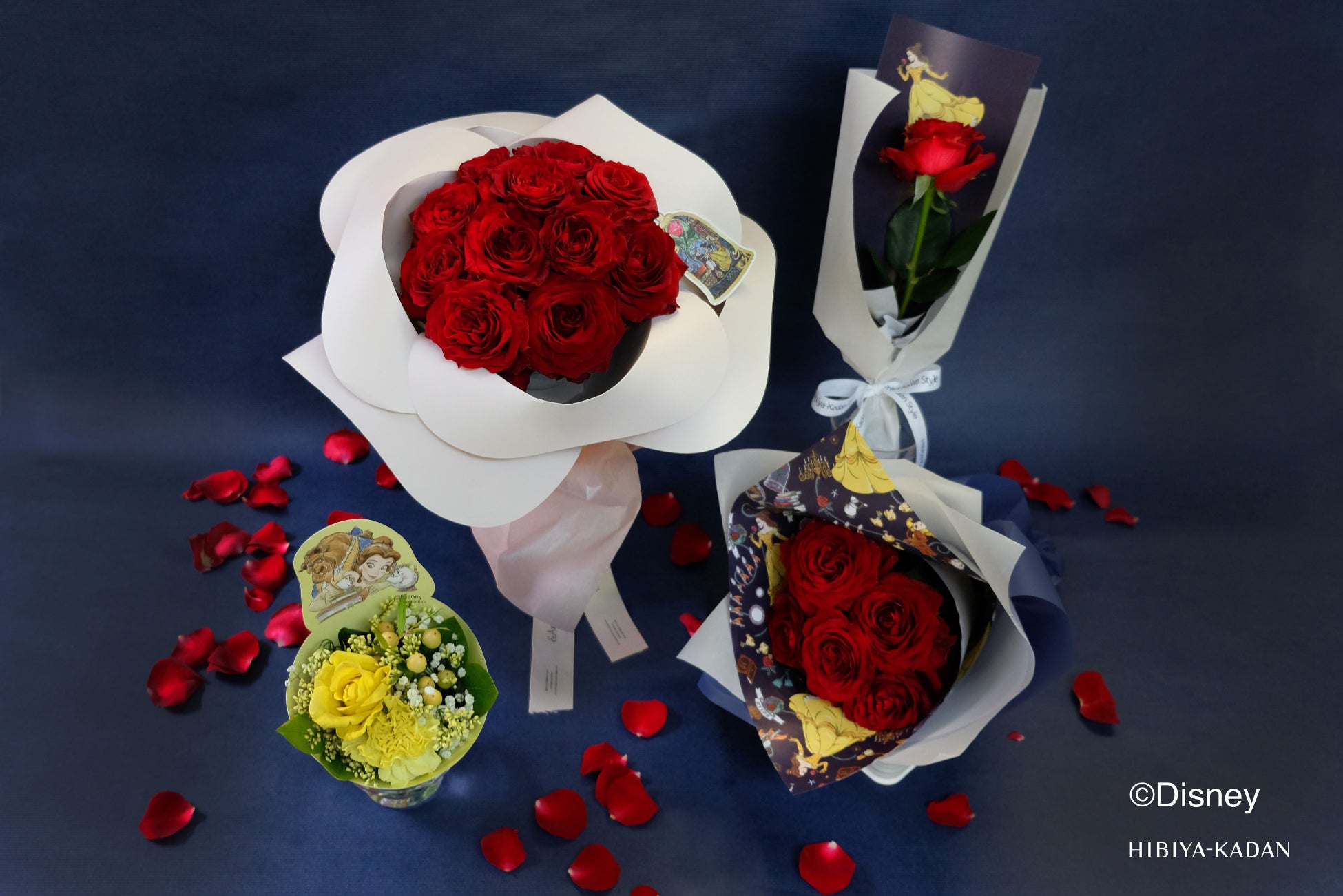 7月7日は愛を贈る七夕。ディズニー・アニメーション映画『美女と野獣』の世界観を表現した「真実の愛」を象徴する深紅のバラのブーケなど、4種のフラワーギフトを日比谷花壇店頭で期間限定販売。