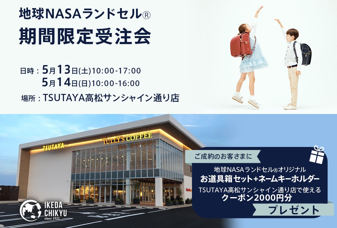 【香川】TSUTAYA高松サンシャイン通り店にて「地球NASAランドセル®受注会」を5/13(土)・5/14(日)の2日間限定で開催いたします。