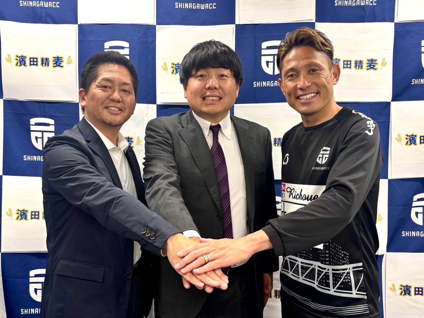 本スポンサー契約は、今シーズンより品川CCのコーチに就任した森脇良太と濱田精麦株式会社様とのご縁をきっかけに実現したものであり、両者の想いが一致したことにより締結に至りました。