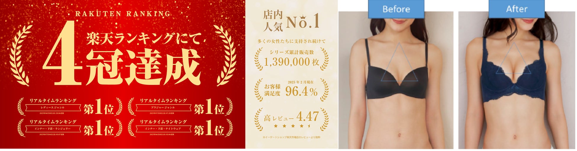 その結果、『グラモアブラ』は自社調査による使用感満足度は96.4%を頂いており、楽天市場の【総合リアルタイムランキング第1位】の4冠も達成する人気シリーズに育てて頂きました。