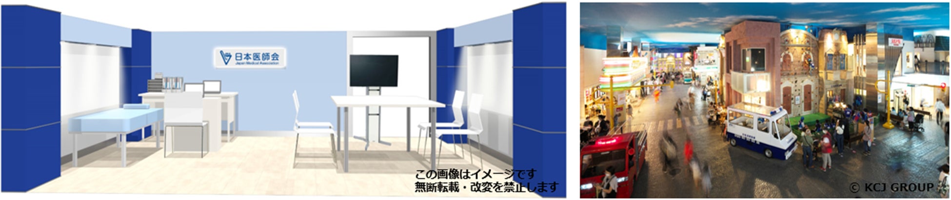 政府が推進する「21世紀における国民健康づくり運動(健康日本21)」など、健康づくりに対して国民が主体的に取り組む対策が重要視されています。(※)日本医師会とKCJ GROUP は、本パビリオンでの体験を通してこども達が、臨床医の仕事内容や役割を知り、かかりつけ医の存在を身近に感じるとともに、医療行為の意味や予防接種の意義を学び、健康に対する意識を高める機会になることを期待しています。