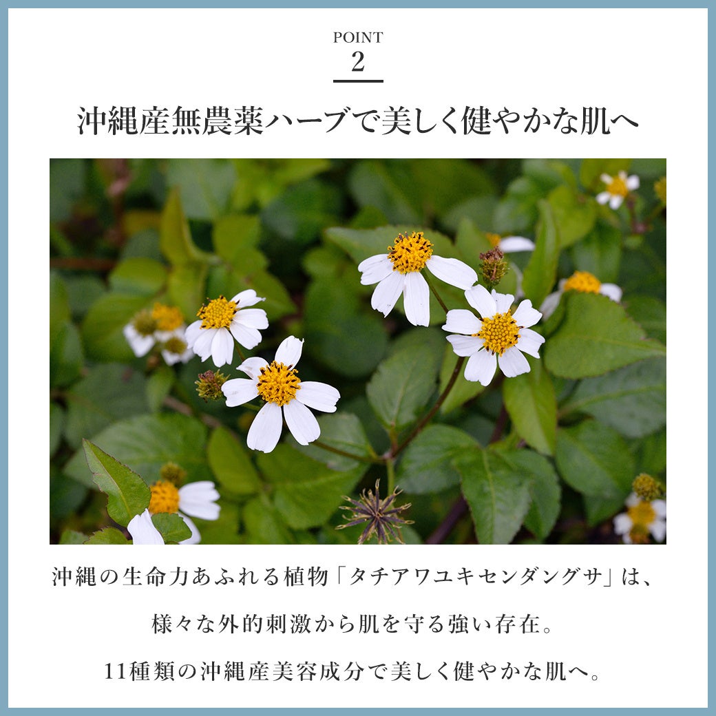 『タチアワユキセンダングサ』をはじめとする、11種類の沖縄産美容成分で美しく健やかな肌へ。