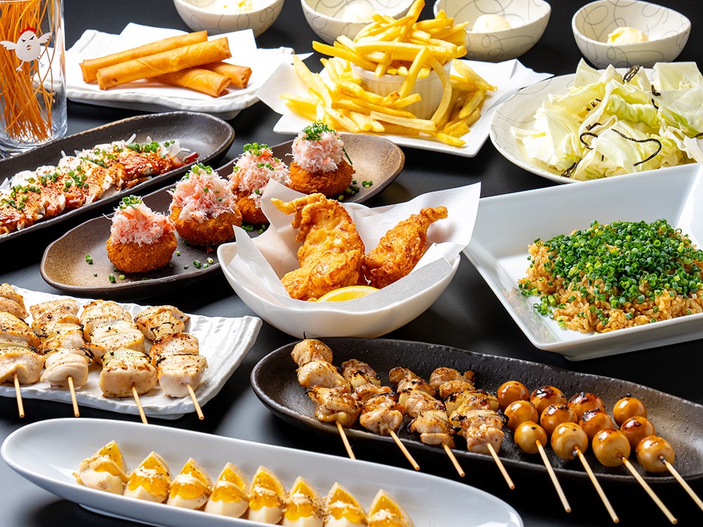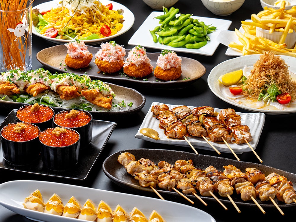 コッコちゃん自慢の焼鳥『とりむね』『とりもも』に日本唐揚協会からあげグランプリ®5年連続金賞受賞『コッコちゃんの塩ザンギ』や、豪華な『北海道産ホタテクリーミーコロッケ 紅ズワイのせ』や『鶏ねぎ焼き飯』など気軽に人気メニューが楽しめるコース!