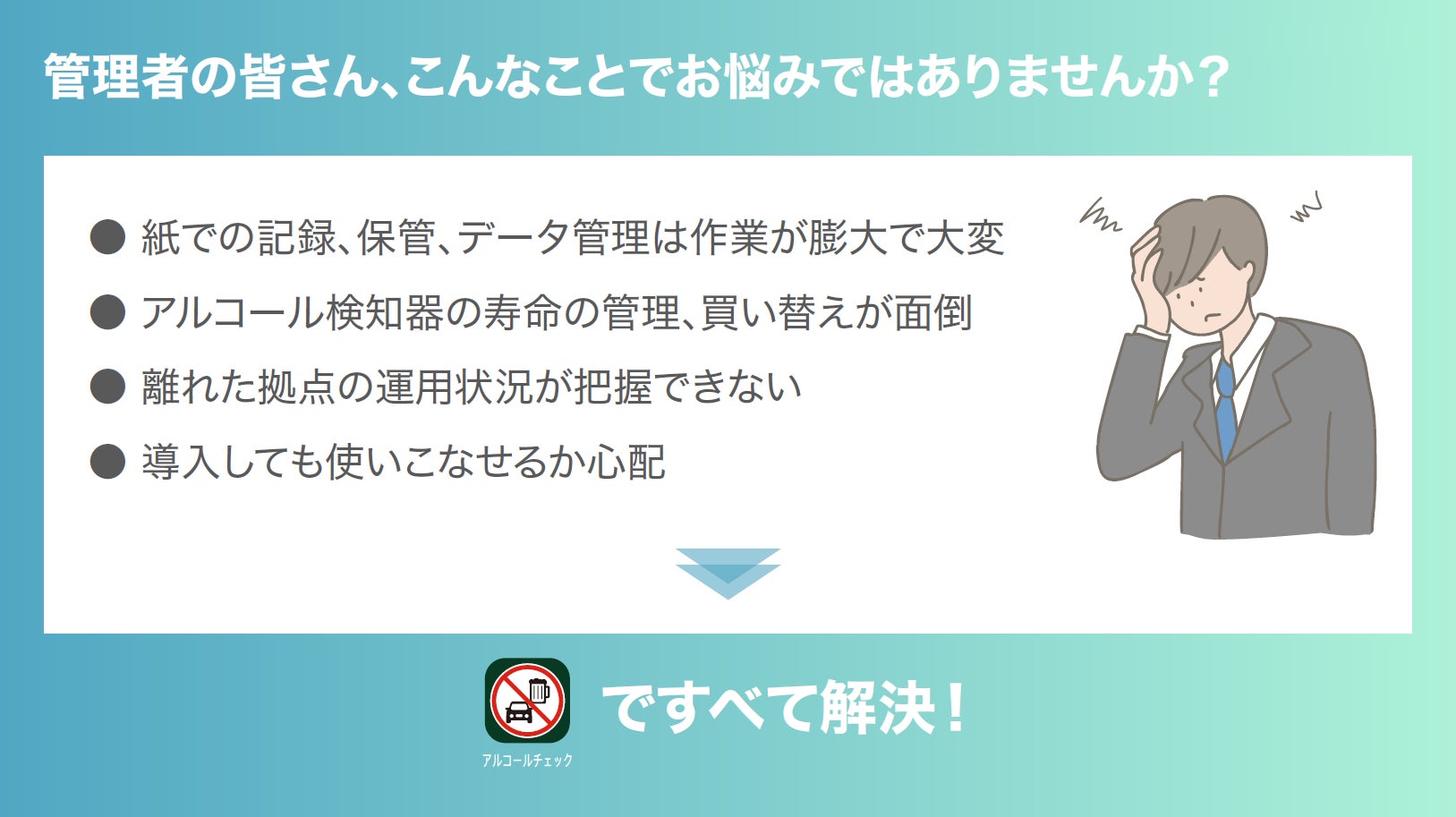 アルコールチェックの【1年間の検査結果保存】義務化に完全対応。