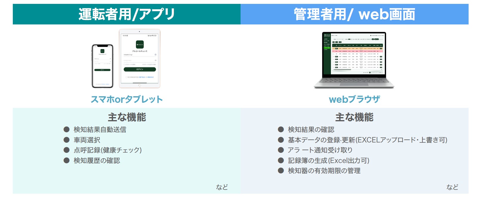 RABLISSの専用アプリを使うことで、ドライバー側・管理者側ともに、アルコールチェックに関する業務が非常にカンタンな作業になります!