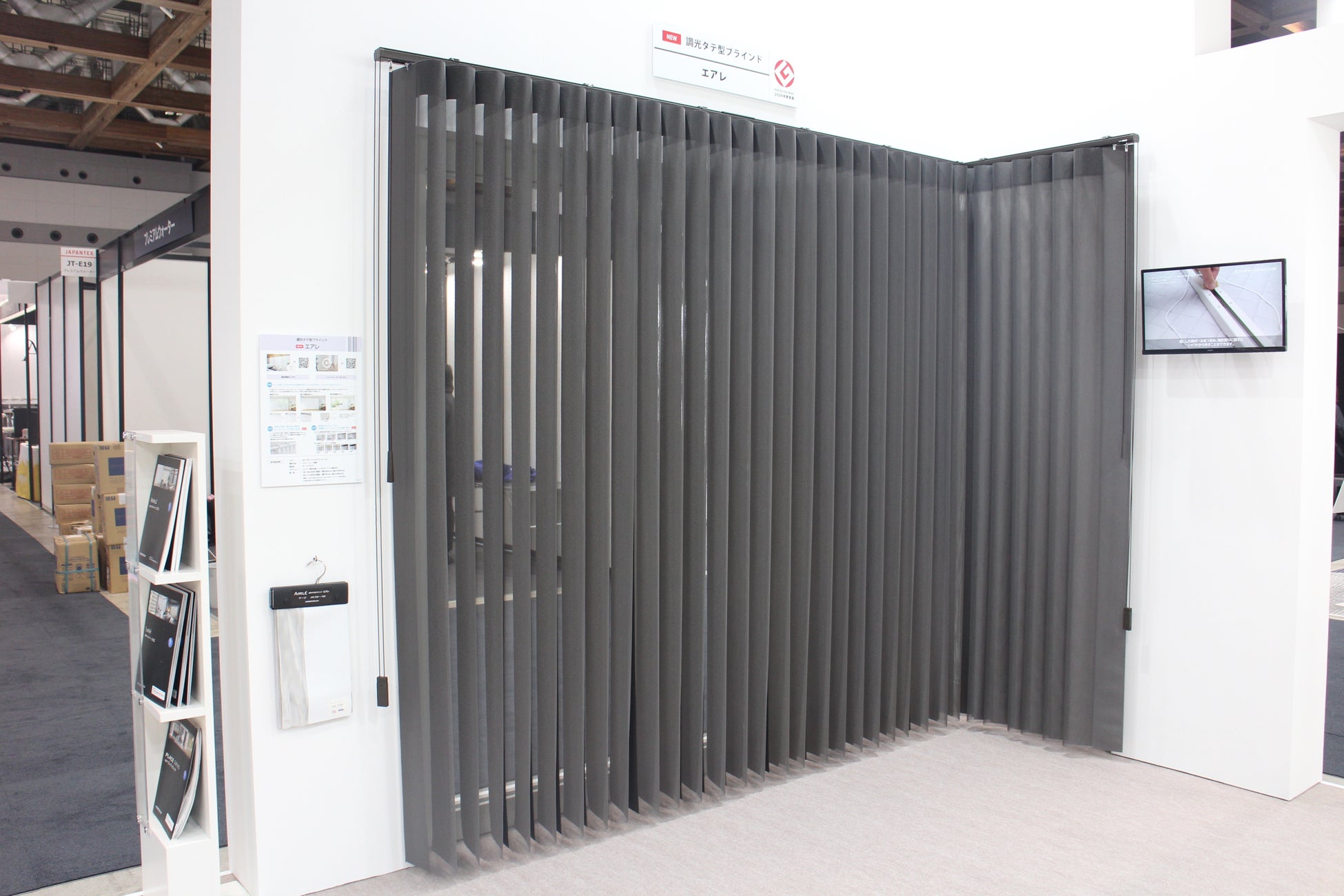 ホテルやオフィスを想定した展示では、高い遮光性を備えたロールスクリーン「ホームタコス ラルク遮光モヘアガイドレール」や間仕切りなどの製品も多数紹介し、快適な空間づくりを支えるソリューションとして、多くの来場者の好評を得ました。
