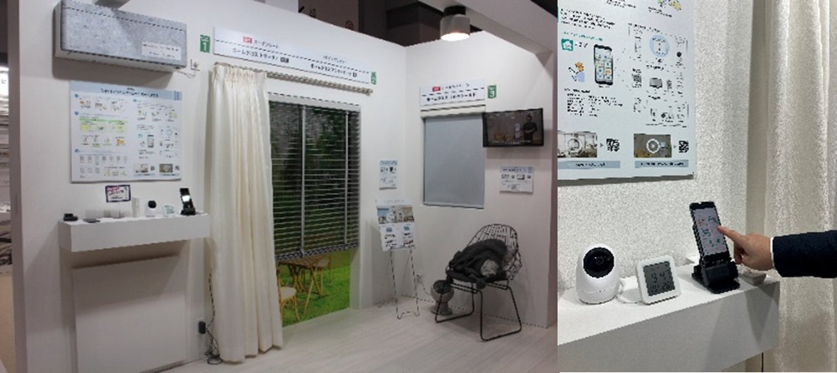 リビングやキッチンを想定した住宅コーナーでは、照明やエアコンなどと一緒にブラインドやロールスクリーンをコントロールできるスマートフォン操作の「体験コーナー」が多くの来場者の関心を集めました。