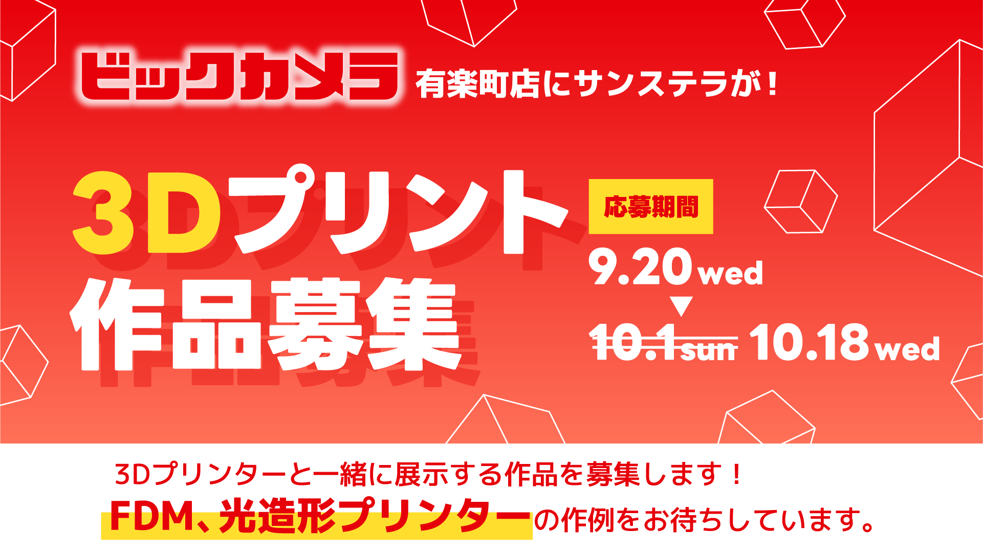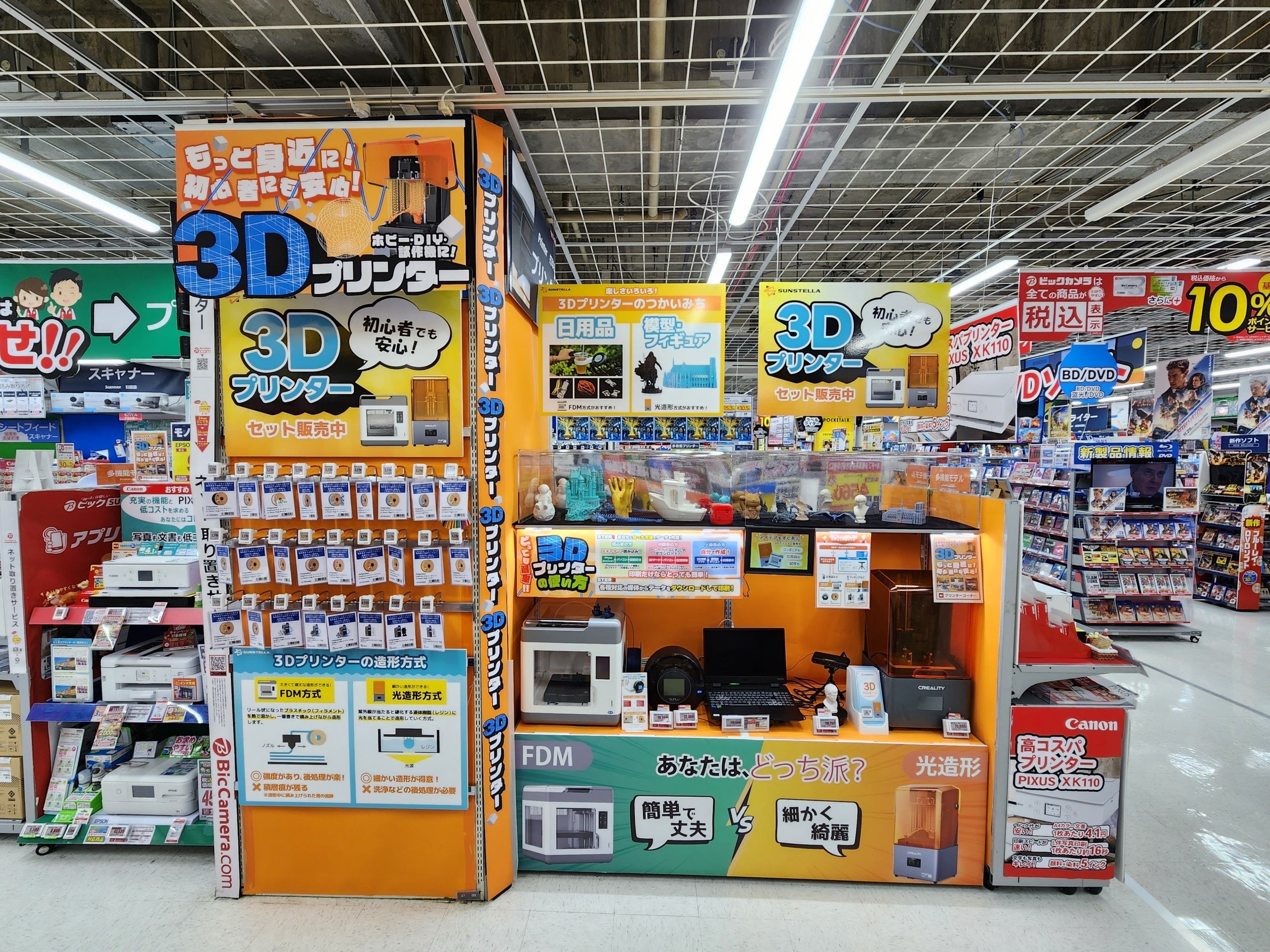 コンシューマー向けの3Dプリンターの輸入販売を行う株式会社サンステラ(本社:京都豊島区、社長:和田裕介、以下「サンステラ」)は、東京都のビックカメラ有楽町店にて3Dプリンターやフィラメント、レジンなどの